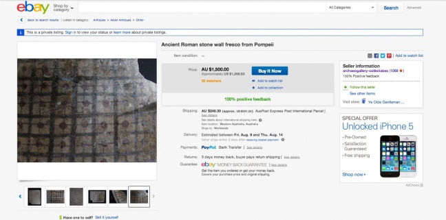In rete ormai si può acquistare di tutto, anche un affresco del I secolo d.C. proveniente dal sito archeologico di Pompei.