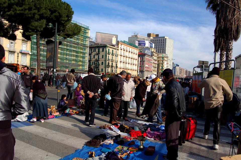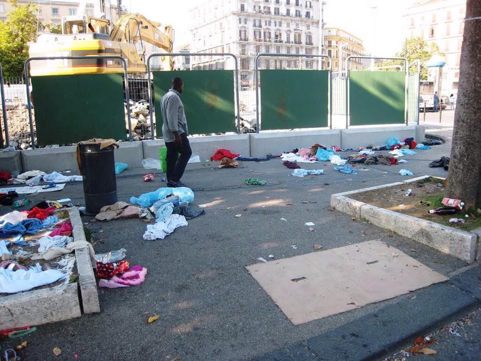 Uno degli spettacoli peggiori, è quello del “mercato improvvisato”: alcuni extracomunitari (più di una decina) si organizzano con passeggini e bancarelle, per trasportare merci da vendere, proprio qui, nel mezzo di Piazza Garibaldi.