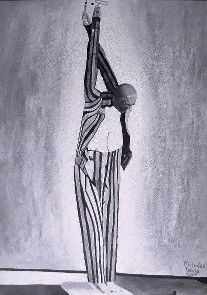 Un’artista schierato dalla parte dei vinti, con opere che sono una testimonianza e un richiamo, un appello alla coscienza civile, con una condanna netta alla violenza e alla prevaricazione dell’uomo sull’ uomo. Racconta il male del mondo, Nicholas Tolosa, e lo fa in maniera marcata e cruda, senza smancerie o effetti di comodo, con un tratto ruvido, netto, nell’ essenzialità del bianco e nero e di una infinita varietà di grigi. Drammatico ed incisivo il suo tributo alle vittime dell’Olocausto: