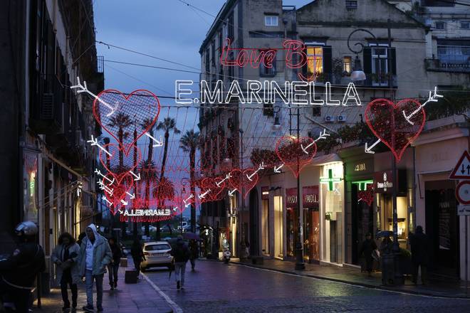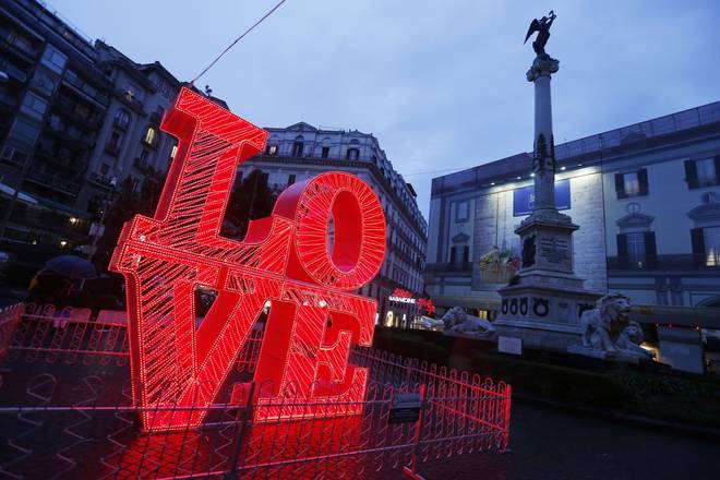 Napoli fa il pieno di romanticismo grazie ai cuori giganti e alle scritte che celebrano, esaltano ed omaggiano l’amore in vista dell’imminente “festa degli innamorati”. San Valentino è alle porte e in via Morelli, via Calabritto e piazza dei Martiri sono state installate luci decorative che suggellano la sfilza di appuntamenti, eventi e manifestazioni in programma per il 14 febbraio, per consegnare una serata indimenticabile alle coppie che festeggeranno l’amore alle pendici del Vesuvio.