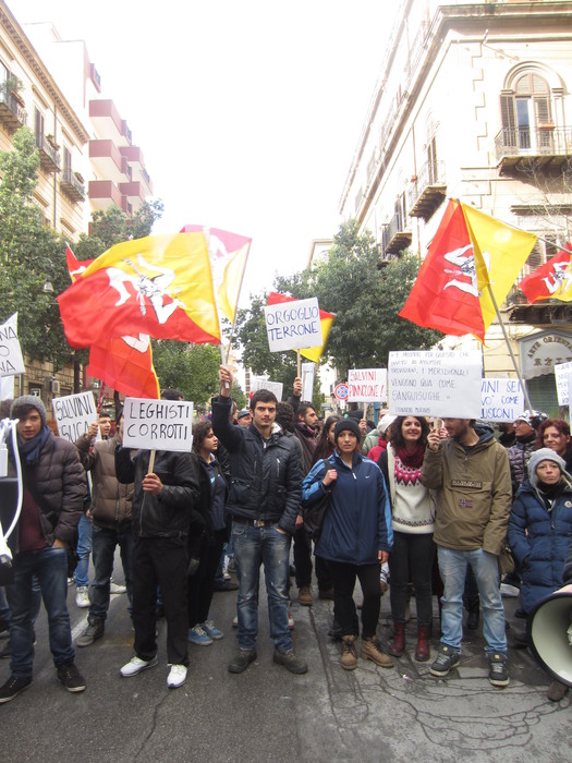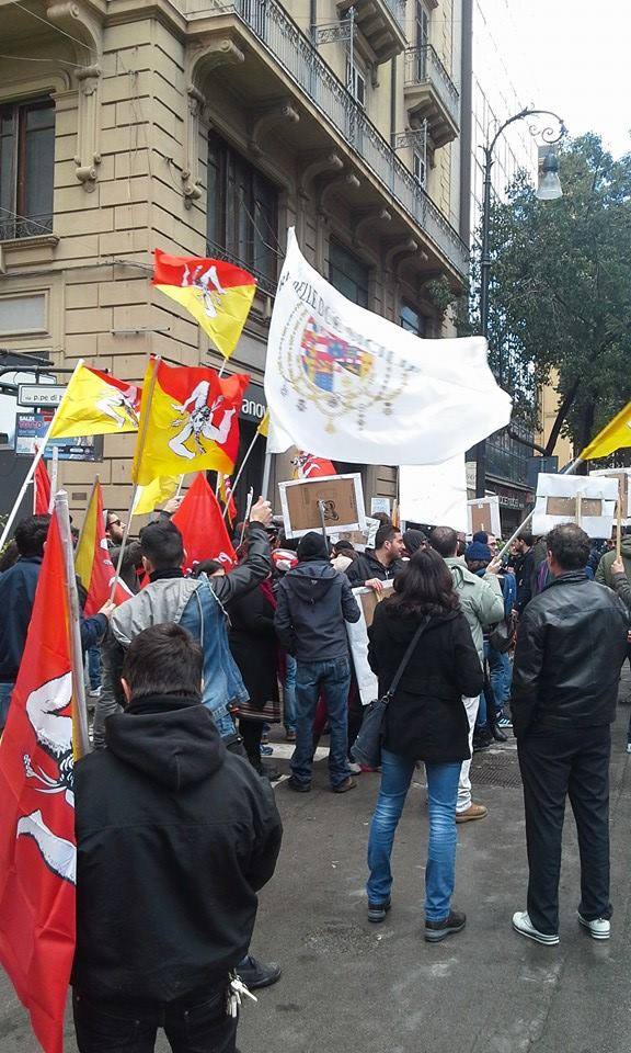 Decine di bandiere giallorosse della Trinacria e del Regno delle due Sicilie sventolano per rivendicare il senso d’appartenenza e l’orgoglio meridionale.