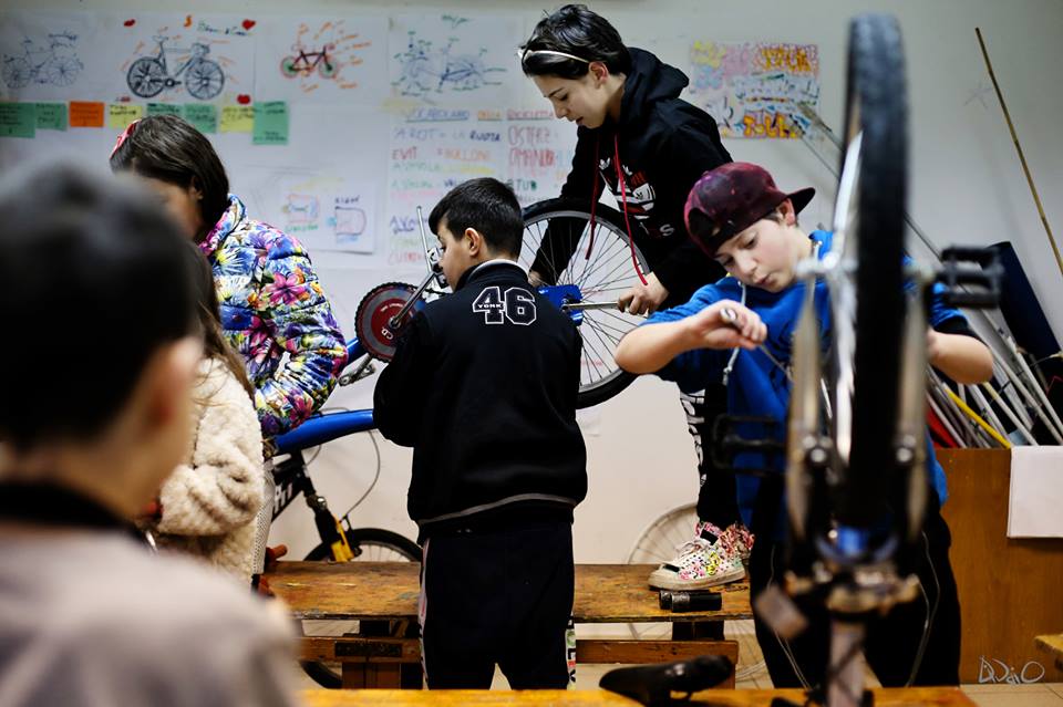 Chiede ad ognuno di dire la sua e poi organizza la giornata. Inizia il lavoro; ogni uno con il suo compito, chi non ne ha subito aiuta l’altro mentre aspetta il suo turno, una straordinaria rappresentazione di comunità laboriosa. Straordinaria e con pochi intoppi. Mi spiego: provate a prendere dieci bambini in qualsiasi parte del Mondo metteteli tutti insieme in una stanza con cinque bici smontate e centinaia di attrezzi da utilizzare. Provate a stare con loro per un’ora, uscite e poi rientrate. Il risultato potete immaginarlo da soli. Caos. In questo caso quello che subito mi balza agli occhi è la disciplina; di solito ci insegnano a fare cose e stare in silenzio, ma non sempre riusciamo a farlo. Qua tutti parlano e tutti fanno qualcosa, ma cosa importante tutti riescono.