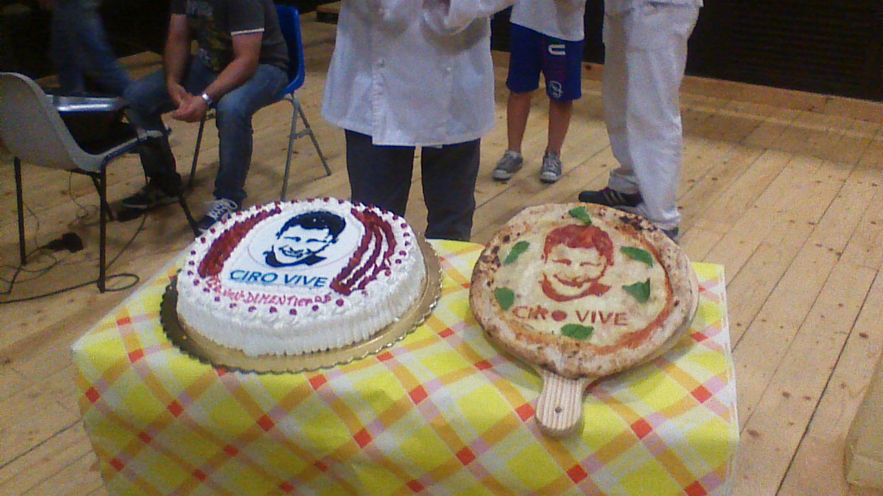 I due detentori di un animo tanto nobile quanto benevolo hanno presenziato all’evento dedicando a Ciro una torta e una pizza. Al termine della cerimonia commemorativa, Sirica ha distribuito la gustosissima torta tra i presenti, mentre Errico Porzio, supportato da una delegazione di suoi efficientissimi collaboratori ha offerto ai presenti le sue succulenta pizze.