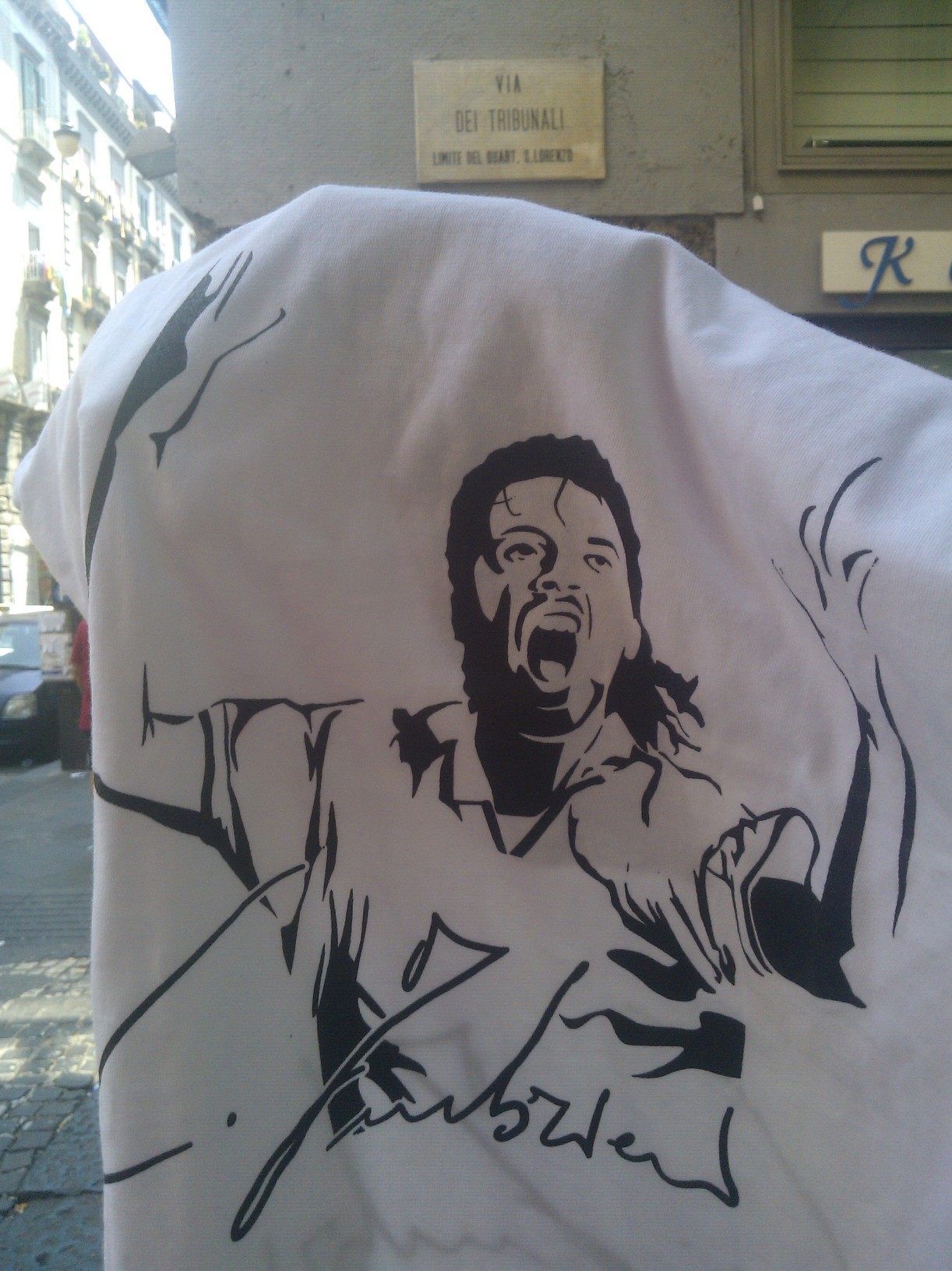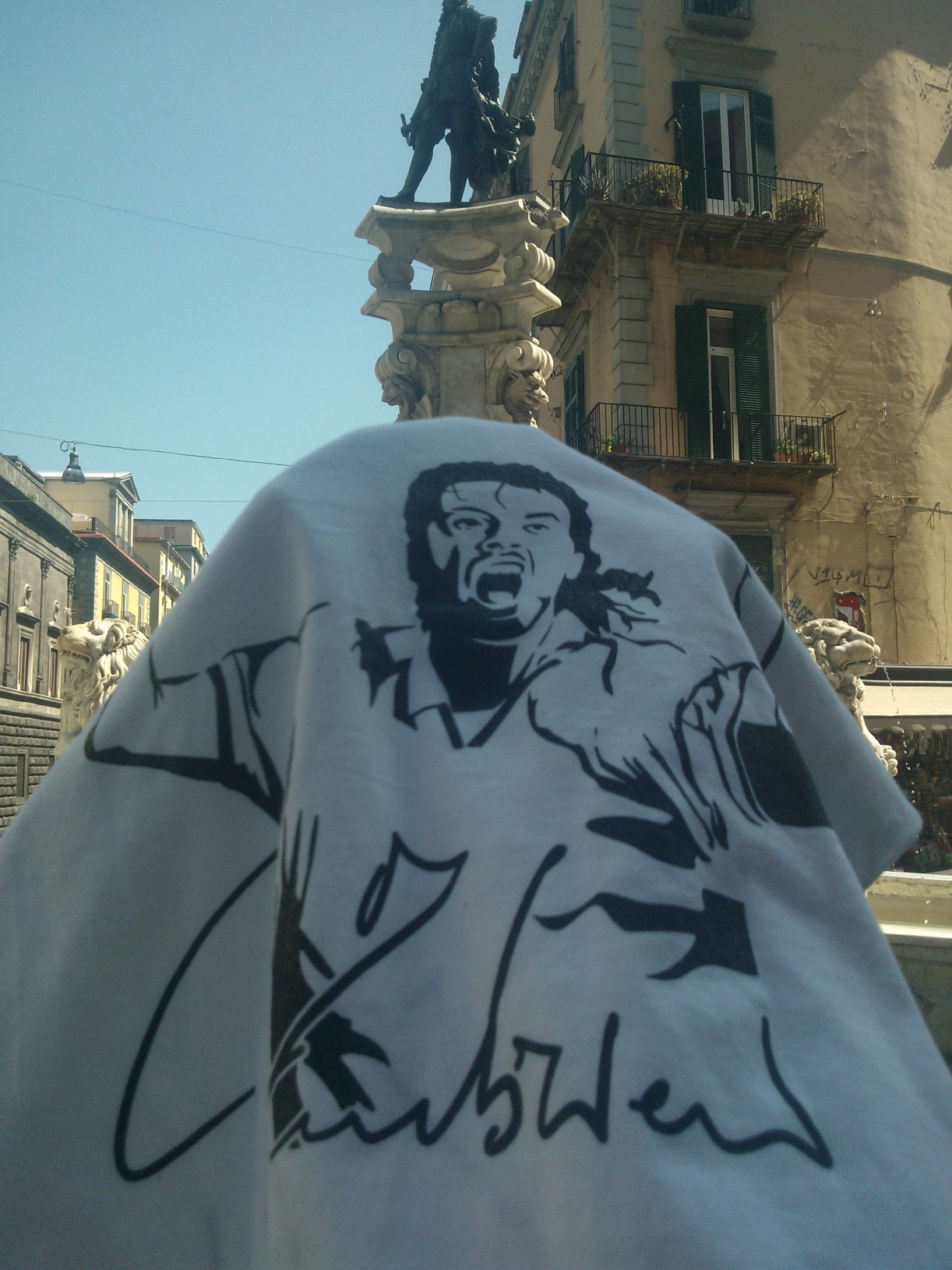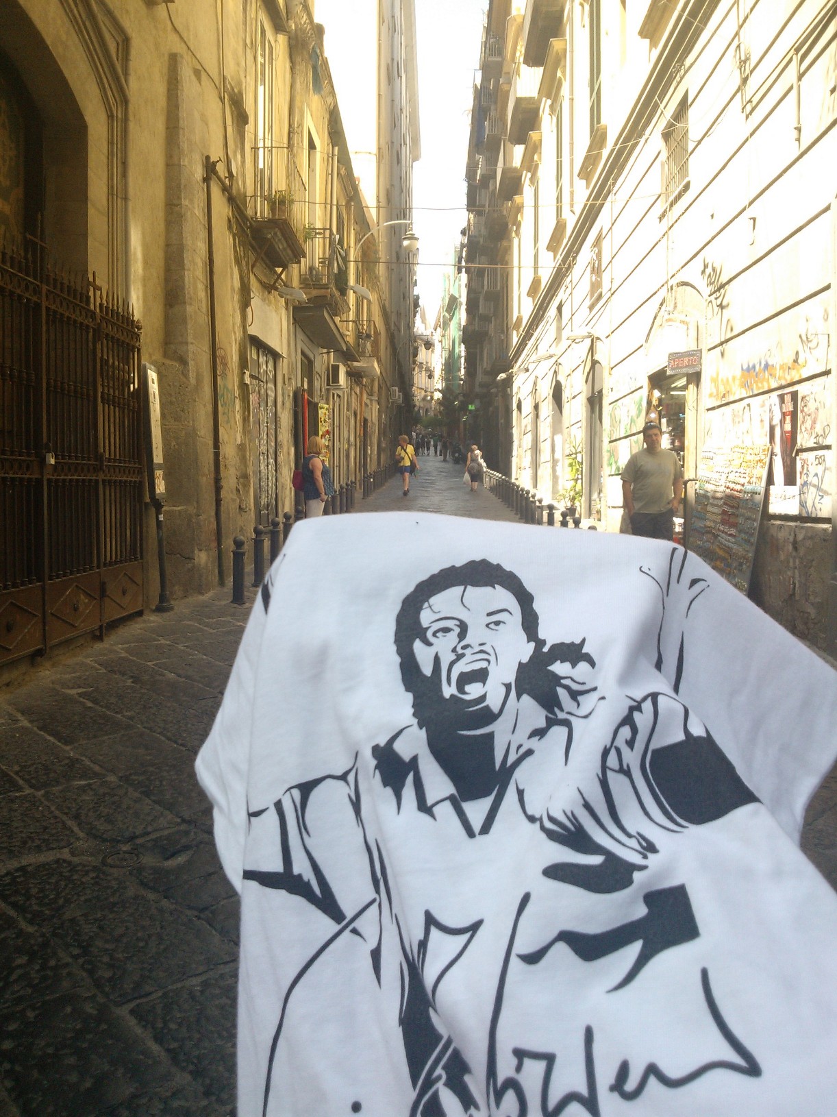 L’ho fatto di proposito, non ho avvicinato nessuno per attirare l’attenzione su quella t-shirt e l’ho fatto per “mettere alla prova” i napoletani e testare sul campo quanto e come fosse diffuso il ricordo di Carmelo: qualcuno si è offerto di tenermi la maglia, per agevolarmi nel compito di scattare le foto, altri hanno espresso parole di forte approvazione per quello che sto facendo e mi hanno chiesto di “non mollare”.