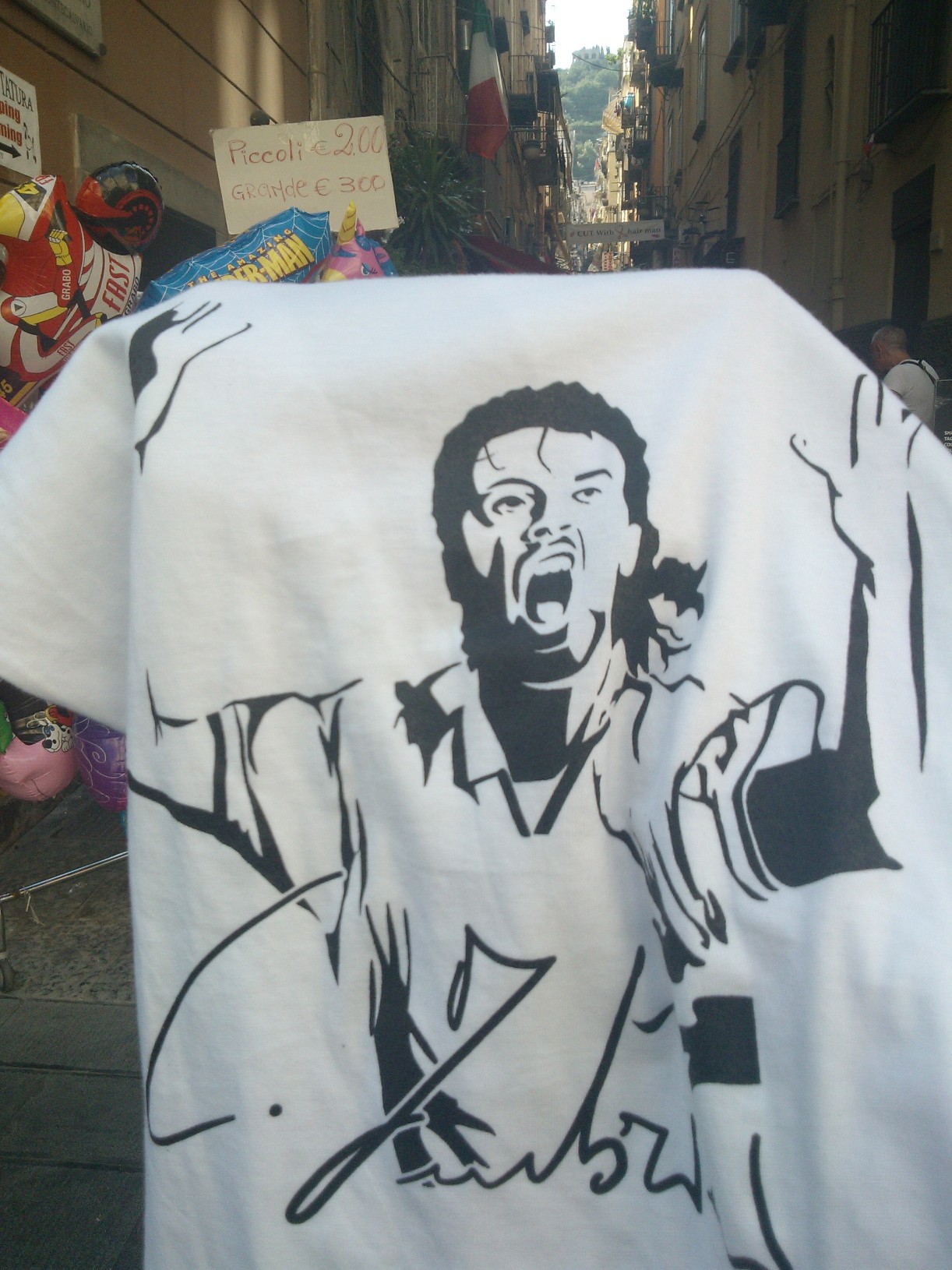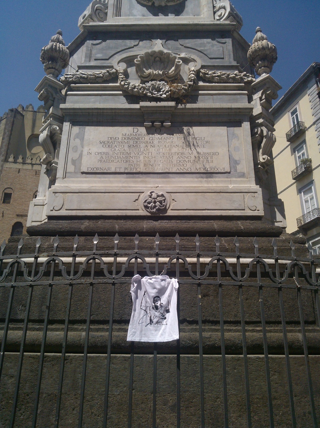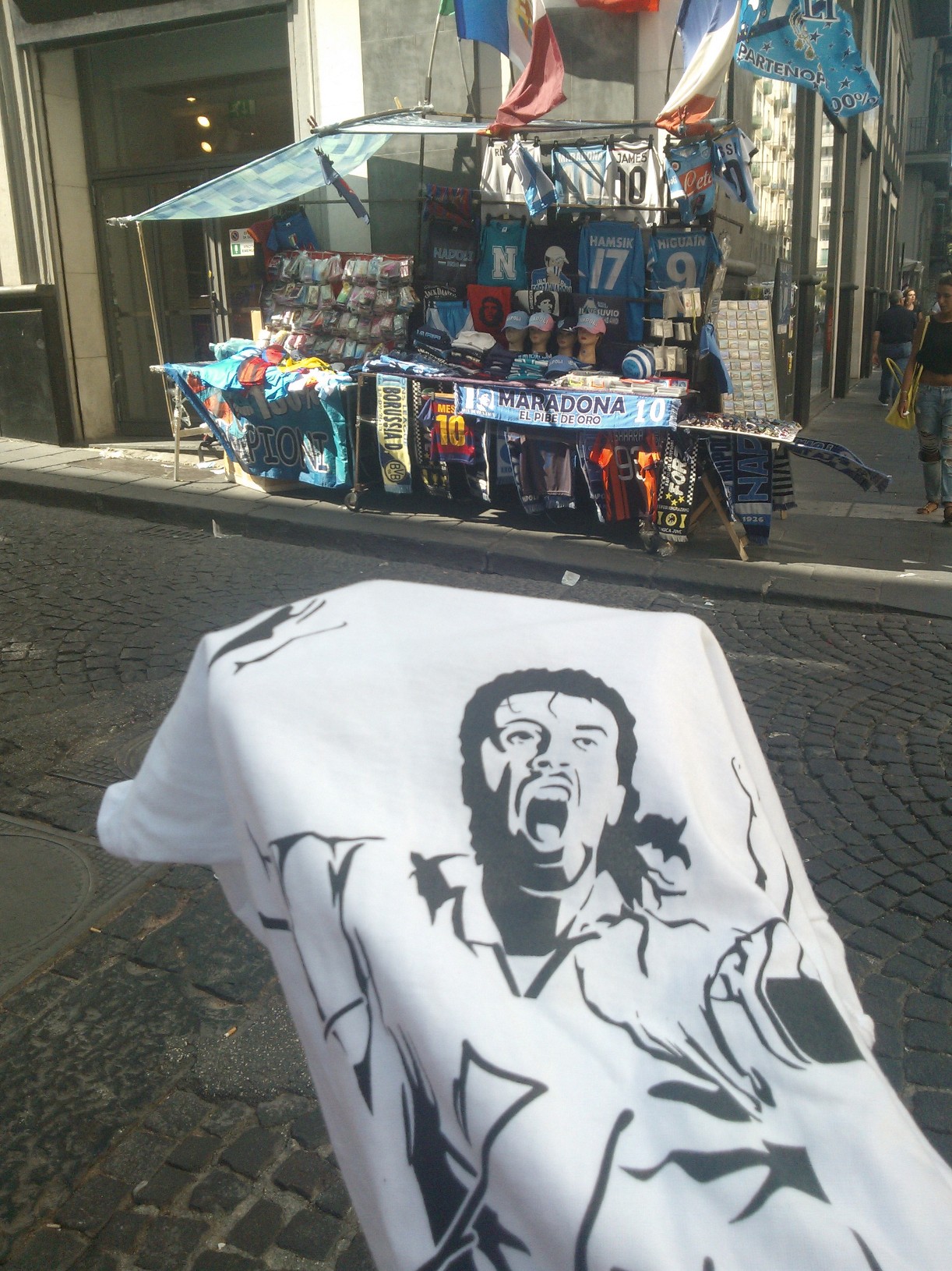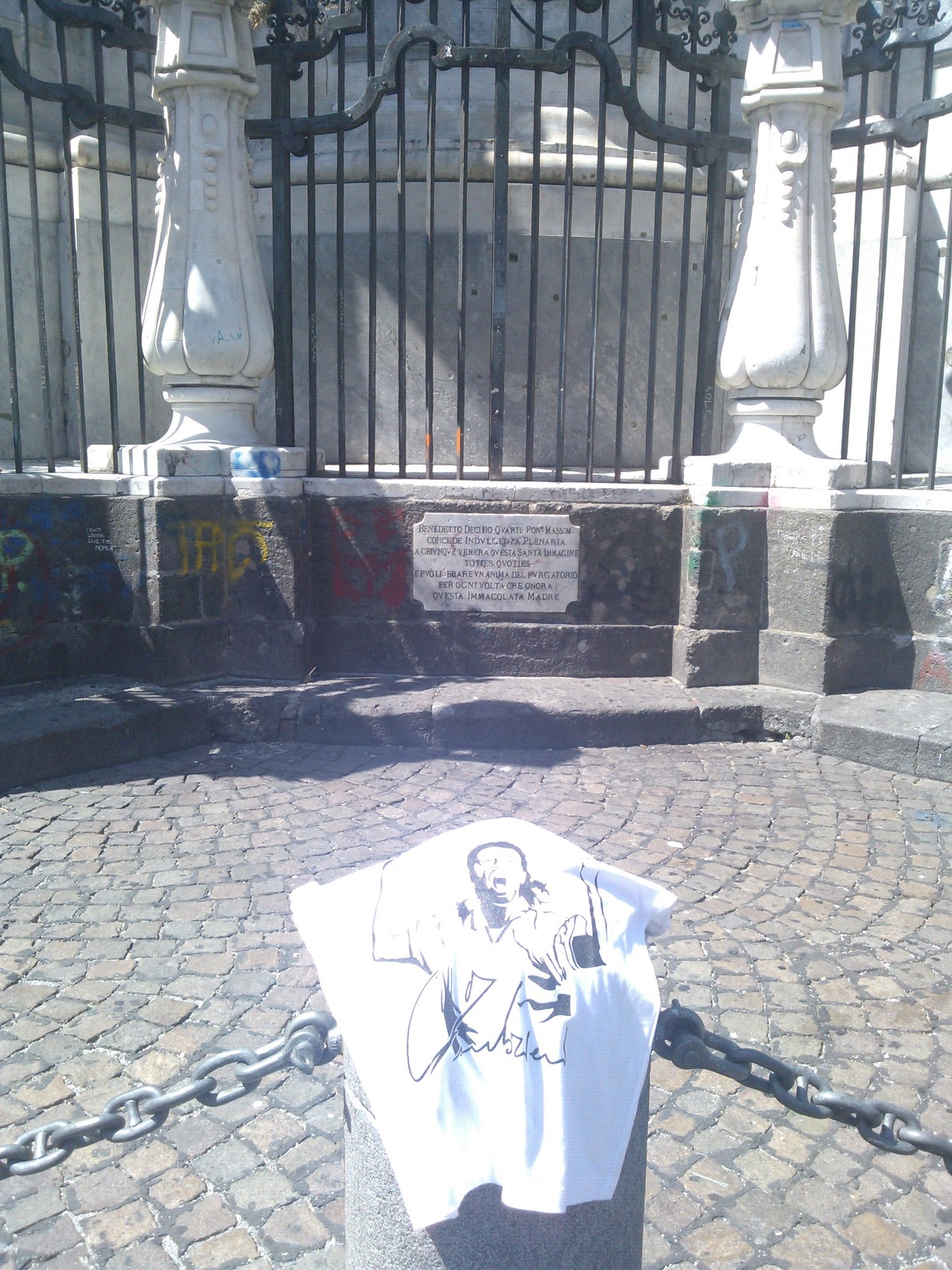 L’ho fatto di proposito, non ho avvicinato nessuno per attirare l’attenzione su quella t-shirt e l’ho fatto per “mettere alla prova” i napoletani e testare sul campo quanto e come fosse diffuso il ricordo di Carmelo: qualcuno si è offerto di tenermi la maglia, per agevolarmi nel compito di scattare le foto, altri hanno espresso parole di forte approvazione per quello che sto facendo e mi hanno chiesto di “non mollare”.