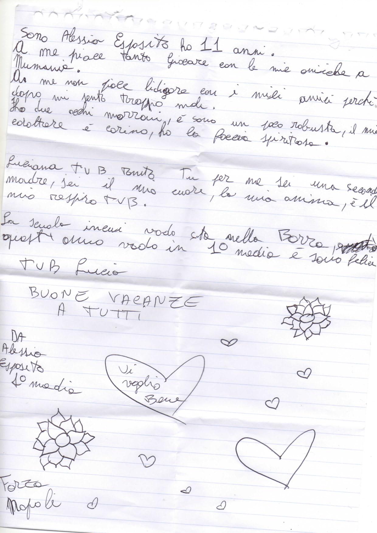 Dai loro disegni, tra il susseguirsi di pensieri tinti tra le righe di un foglio, trapela tutta l’innocente e caparbia incapacità di porsi domande proiettate oltre la semplicistica quotidianità che scalfisce i giorni dell’infanzia. Sono bambini, nati e cresciuti in una periferia “difficile”, come quella di Ponticelli, come tutte le periferie in balia della povertà e della criminalità.