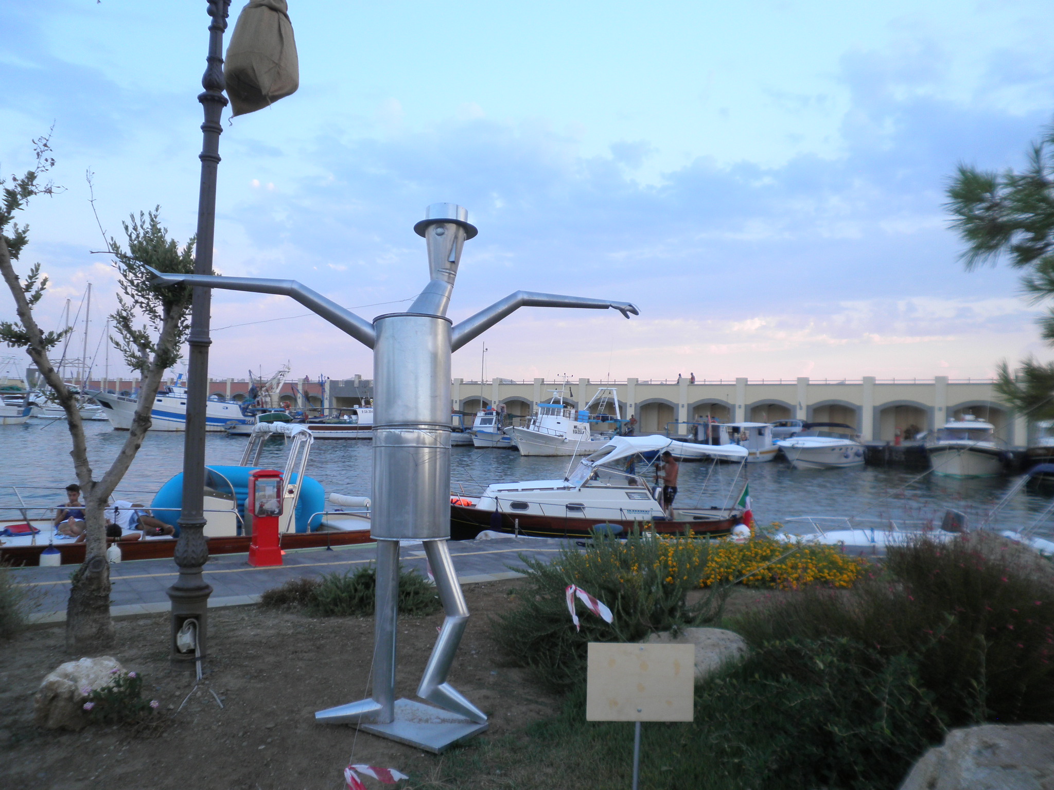È proprio il cosiddetto “isolotto”, costruzione moderna inglobata all’interno del porto della famigerata “Perla del Cilento”, ad accogliere ben cinque esposizioni, frutto dell’estro creativo di Riccardo Dalisi. Una cornice alquanto suggestiva che concorre ad impreziosire il forte e suggestivo tributo alla napoletanità plasmato attraverso delle sculture in latta, da parte dell’architetto, designer ed artista di origini potentine, conferendo forma ed espressione a quello che verrà tramandato ai posteri come il primo porto d’arte contemporanea d’Italia.