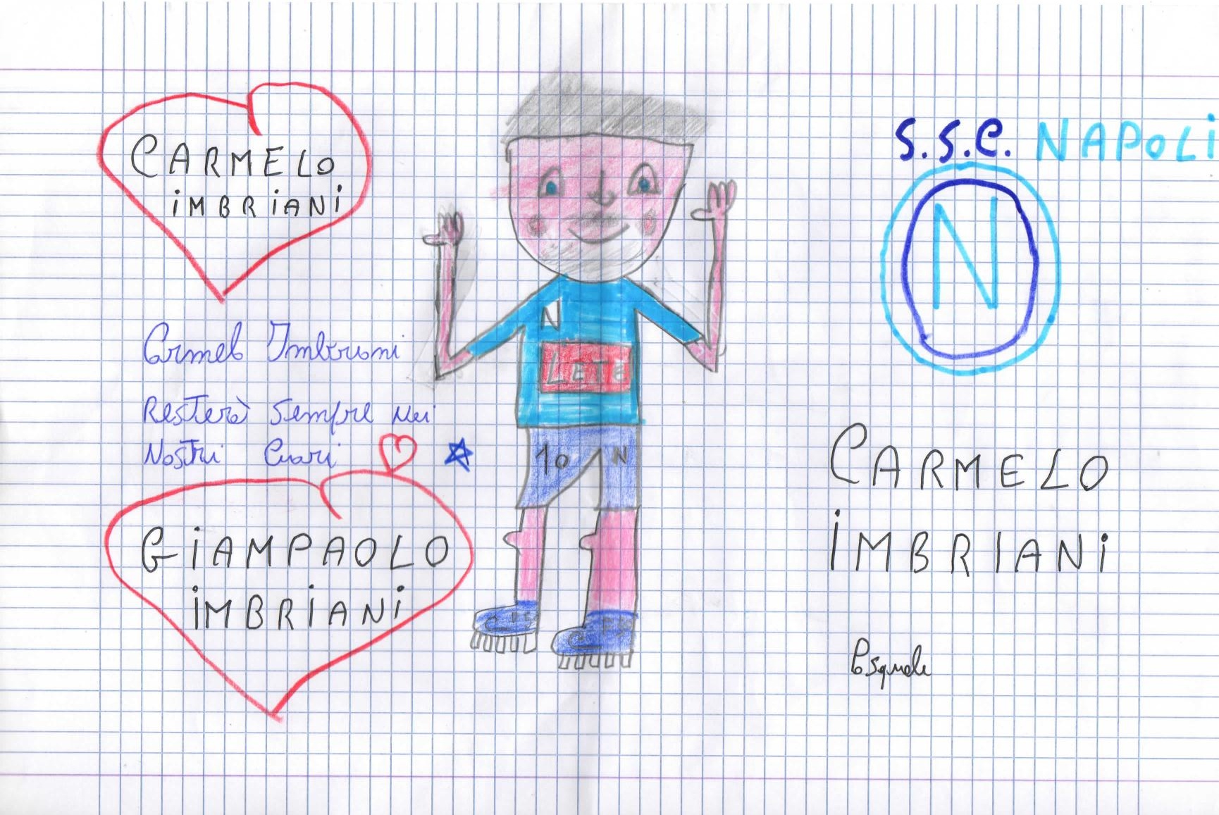 I bambini hanno chiesto ai loro genitori di raccontargli le vicende calcistiche riconducibili ad Imbriani, di mostrargli foto, filmati, di condividere con loro i ricordi legati a quell’esile, ma arcigno guerriero, del calcio e della vita. I più piccoli hanno chiesto ai papà di dargli una mano a disegnare il volto di Carmelo per regalare un bel disegno a suo fratello Gianpaolo.