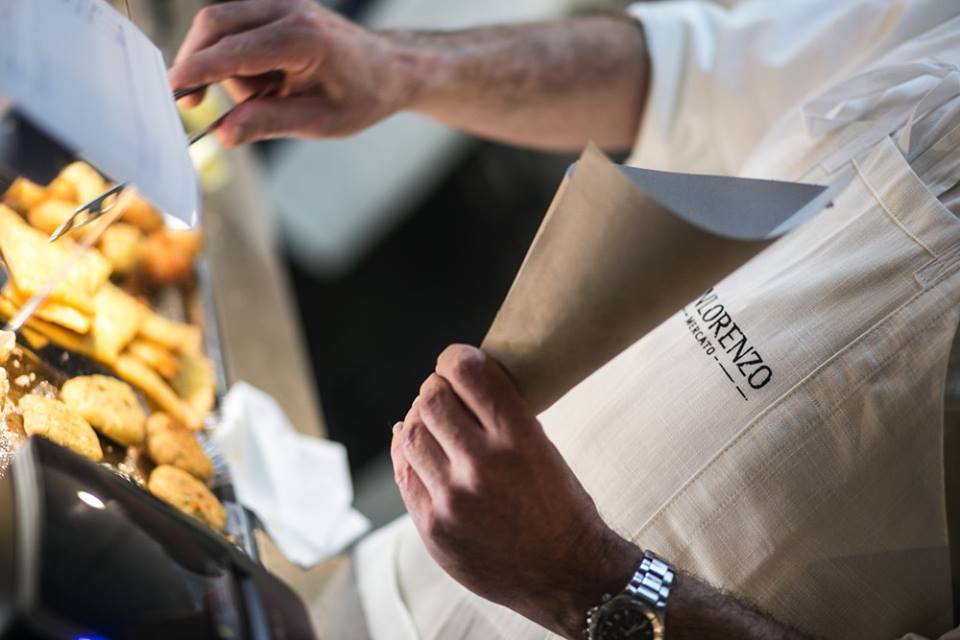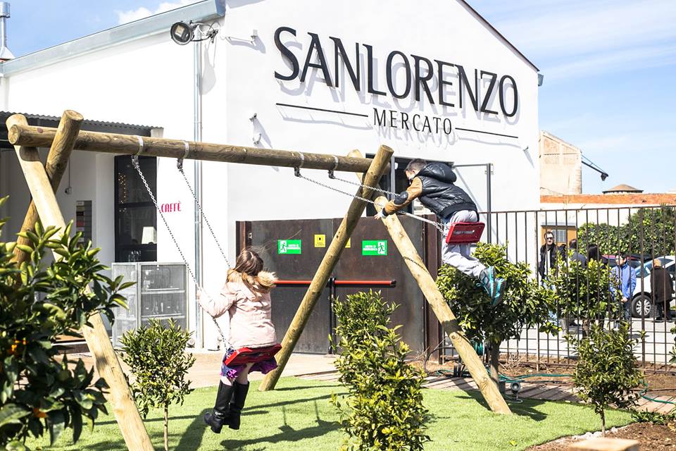 Una palizzata rossa con una dicitura bianca: “San Lorenzo Mercato” che accoglie un modo diverso di pensare al commercio. La novità si racconta facilmente, con un viaggio all’interno di una struttura, al numero civico 288 di via San Lorenzo, segnata da diverse esperienze imprenditoriali. Il percorso annovera una gelateria, poi una cittadella del pane, con il forno curato da Salvatore, scrupoloso panificatore figlio d’arte. Più avanti, la torrefazione, arricchita dai libri di Flaccovio, le roccaforti della carne e del pesce, la sala dei vini, la friggitoria, l’osteria e quanto altro è stato pensato per intessere una narrazione che attiri clienti e che favorisca una dimensione di rapporti e interazioni.