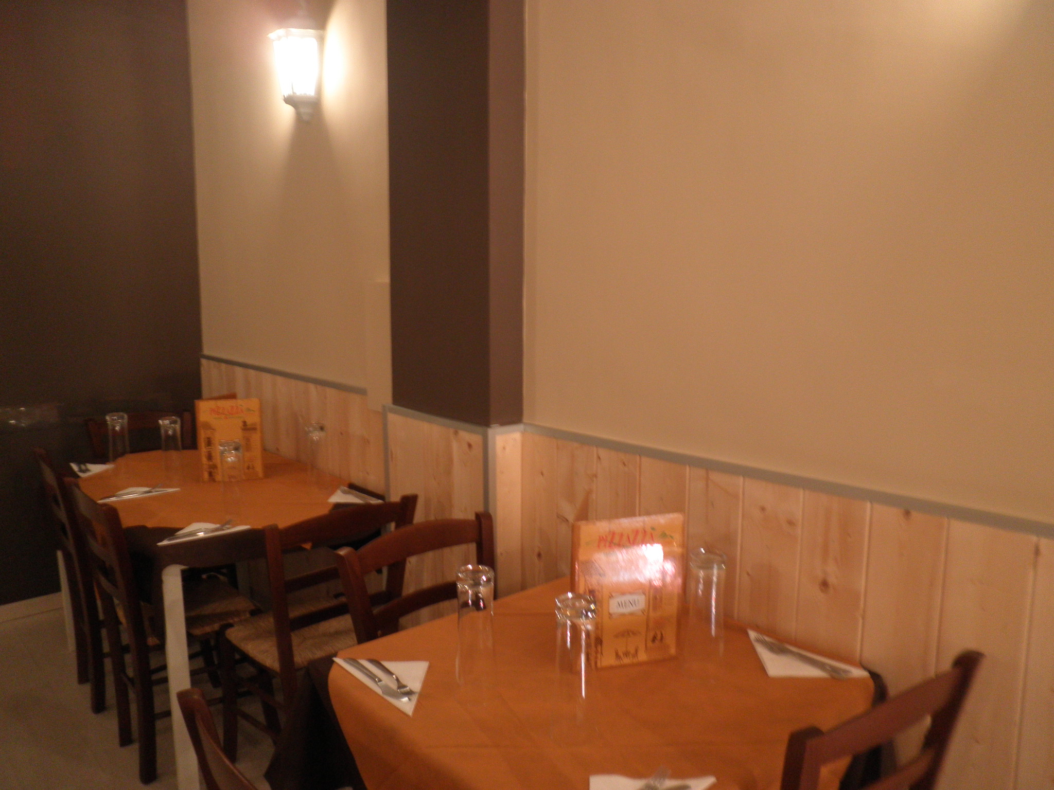 Poco più di quaranta coperti, questo è quanto può offrire la pizzeria Pizzazzà: al maestro Ferrillo non interessano i “grandi numeri”, ma che le famiglie, le coppie, gli amici, chiunque voglia ritagliarsi del tempo per concedersi un ottimo pasto contornato da un clima accogliente e tranquillo, possa farlo senza incappare nello schiamazzi peculiare dei locali iperaffollati.