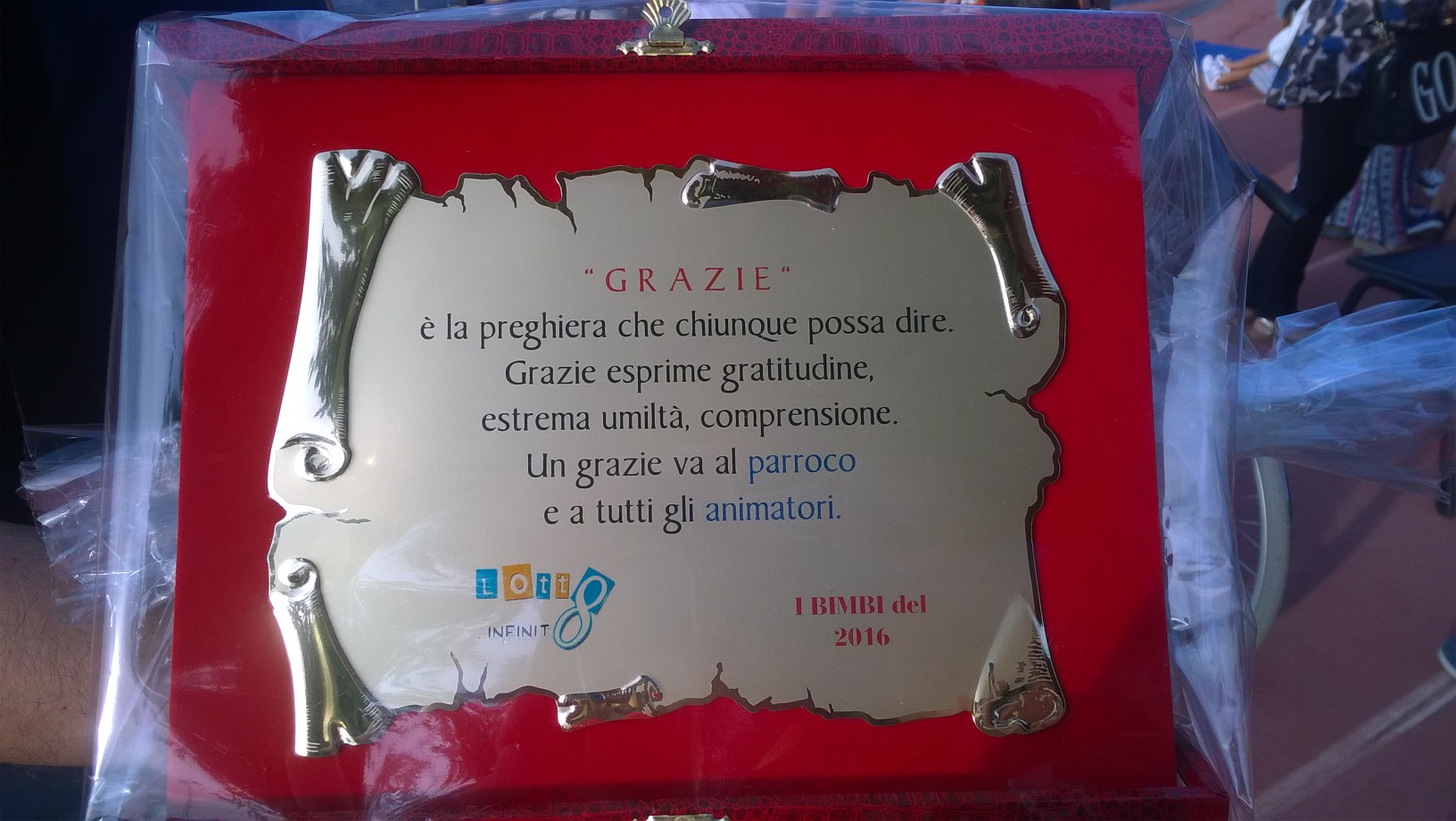 “Grazie è la preghiera che chiunque possa dire. Grazie esprime gratitudine, estrema umiltà, comprensione. Un grazie va al parroco e a tutti gli animatori”: queste le parole scalfite sulla targa di cui hanno voluto avvalersi i bambini dell’oratorio per immortalare l’ennesimo anno di infinite emozioni.