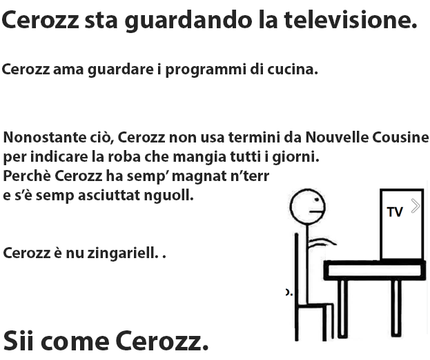 Cerozz, il Meme-protagonista di una serie di freddure rigorosamente napoletane, può definirsi, ormai, un’autentica star del web.