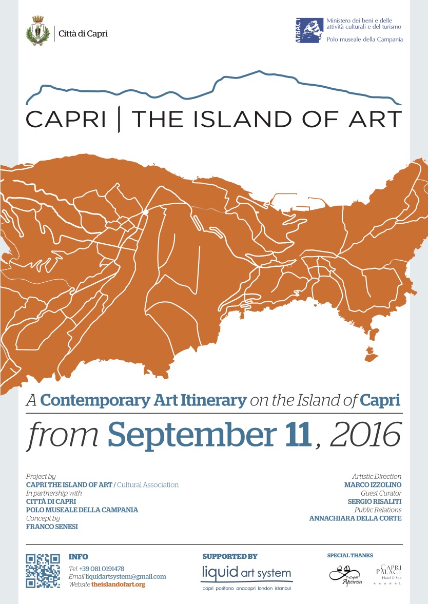 L’arte contemporanea, dunque, anche in questa occasione diventa argomento di incontro e discussione per coinvolgere il pubblico anche non addetto ai lavori per riuscire a fare una riflessione sul nostro passato e sulle nostre radici primigenie sempre pronte ad elevarci. Capri diventa una vetrina sul mondo come un grande mecenate di arte e cultura. L’offerta artisticoculturale e di conseguenza il percorso ogni anno sono nuovi e diversi e sempre accattivanti. Durante tutto il periodo e fino a dicembre saranno a disposizione del pubblico mappe cartacee dell’isola con segnalazione dei luoghi, sito web responsive per smart Phone e tablet attraverso cui sarà possibile trovare schede tecniche e critiche sia delle opere che degli artisti.