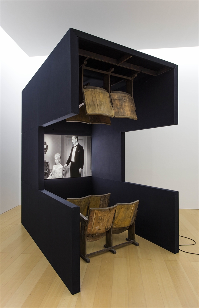 La prima sezione della mostra, articolata su tutto il terzo piano del museo, presenterà le opere con cui l’artista esplora, in un’iniziale tangenza con le estetiche pop, la dimensione della comunicazione di massa, fino alla serie degli Schermi (anni Cinquanta-Settanta), che si integrano con i “tappeti-zerbini” e una pluralità di altre opere e materiali connessi alla ricerca sui significati e le dinamiche della proiezione, tra cui i principali lavori scultorei e installativi della fine degli anni Sessanta (Cinema a luce solida, 1968; Pila a luce solida, 1968; Colonne di luce, 1968; Luna, 1968). Il percorso culmina in una selezione delle opere con proiezioni, da quelle in 16mm degli anni Settanta su corpi ed oggetti (vari esemplari di Senza e Senza ideologia, la ricostruzione di Intellettuale-Pasolini), fino alle più recenti proiezioni su supporto digitale e di impianto ambientale.