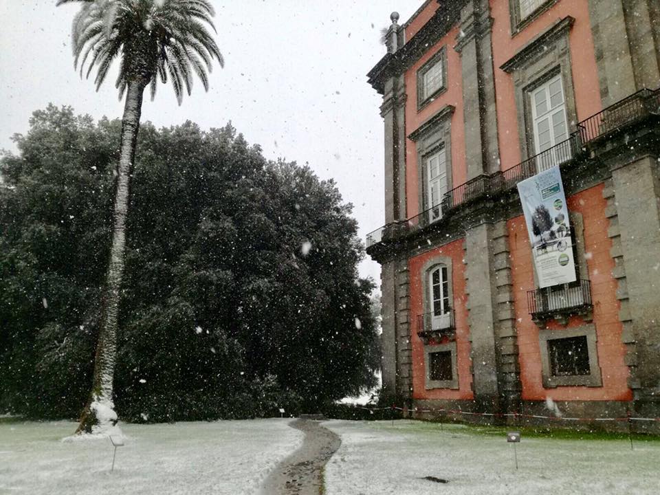 Immagini davvero fuori dal consueto giungono anche da Napoli, complice la nevicata di questa mattina che ha completamente coperto di bianco anche il Real Bosco di Capodimonte a Napoli.