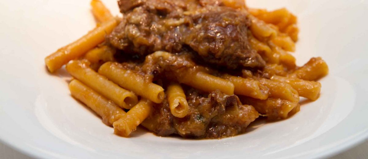Una ricetta mediterranea, che si trova in molti paesi e che alcuni confondono con lo spezzatino. Ma a Napoli è qualcosa di più: è la perfetta fusione tra cipolle, carne e pasta, preferibilmente mezzanelli, mezzani e ziti spezzati a mano, ma anche formati grossi a piacere.