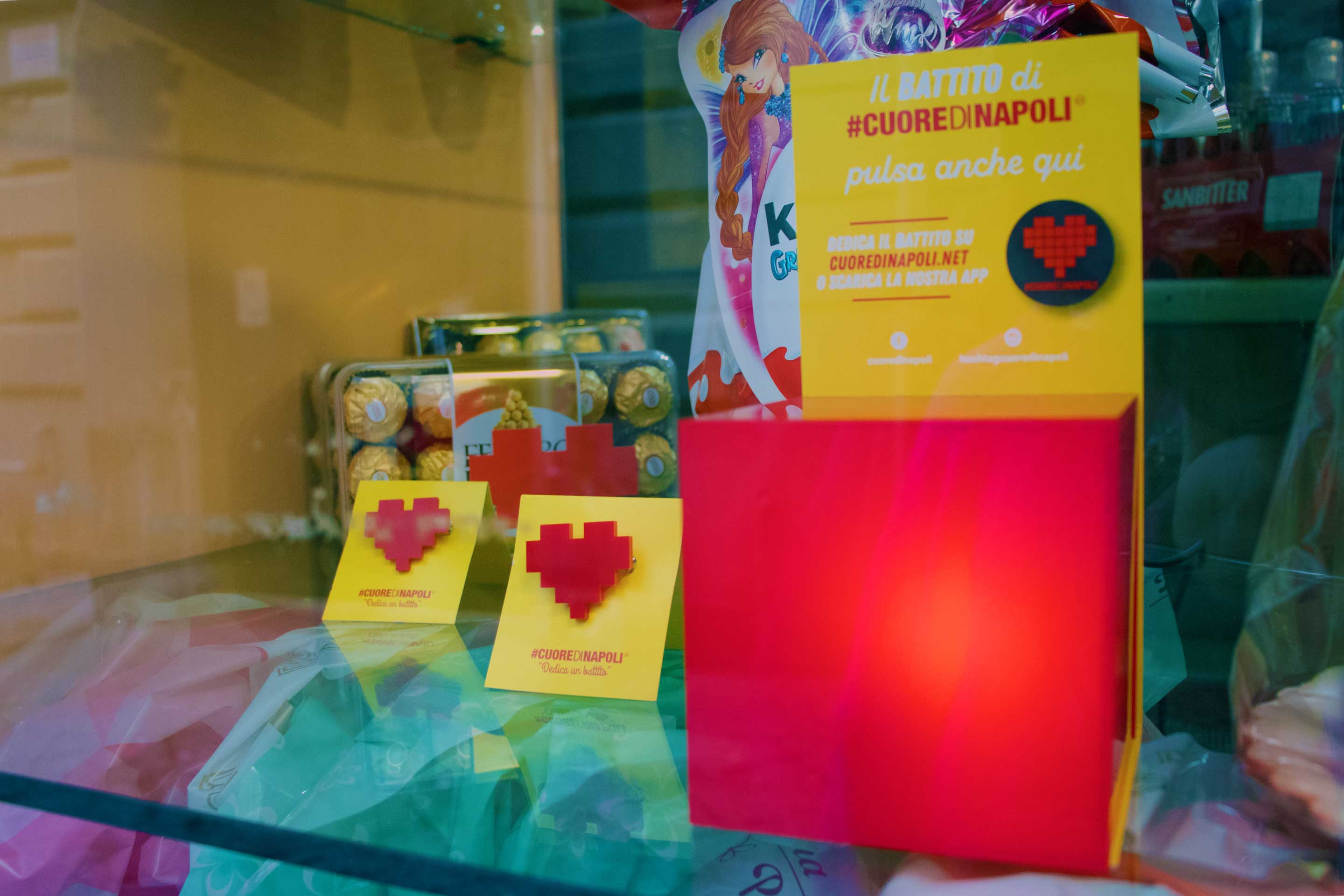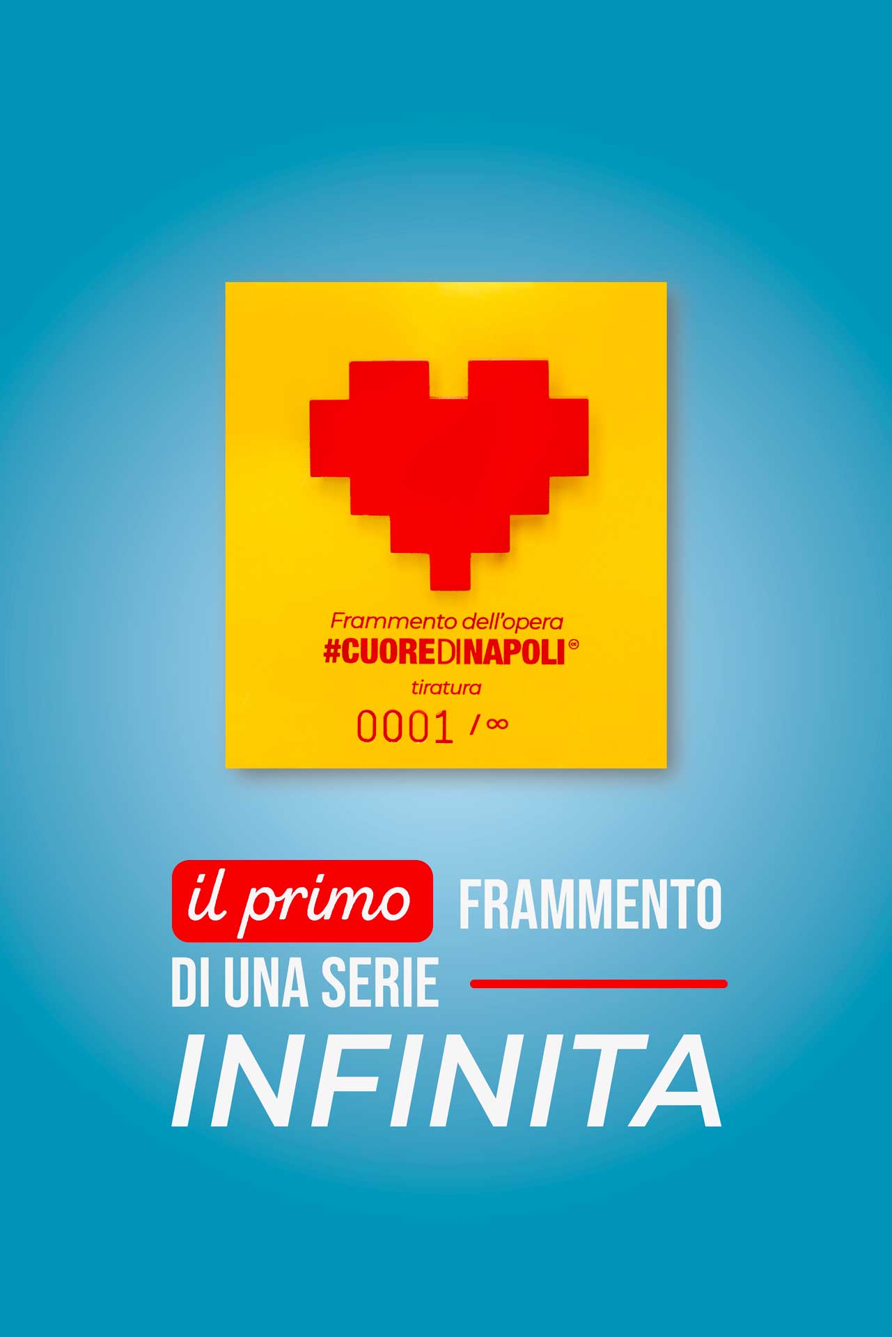 Inoltre, è stata avviata dallo scorso marzo la diffusione di “frammenti di opera” a forma di gadget-spilletta, un cuore rosso che sempre più napoletani scelgono di adottare e di diffondere, numerato da 1 a ∞ (infinito).