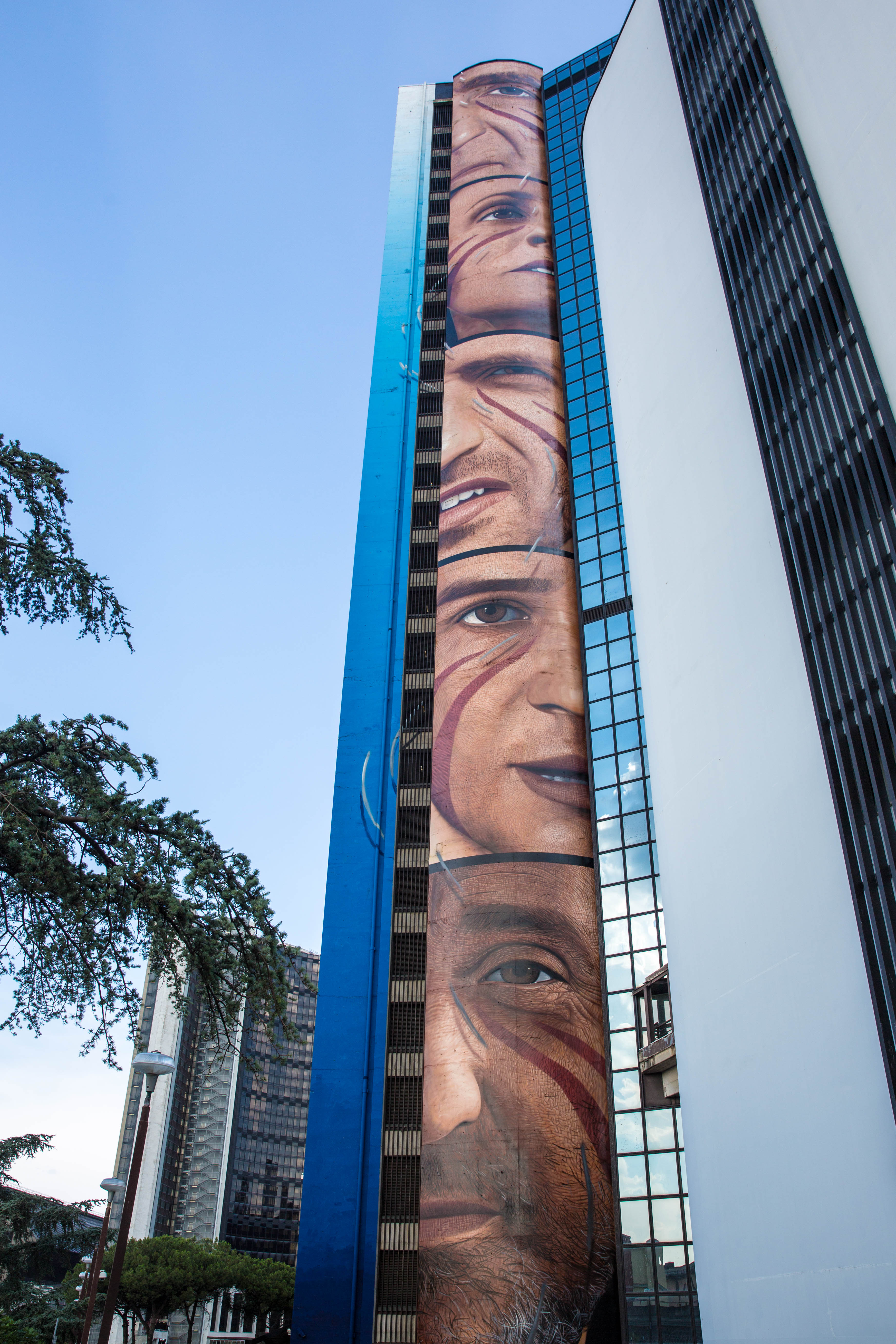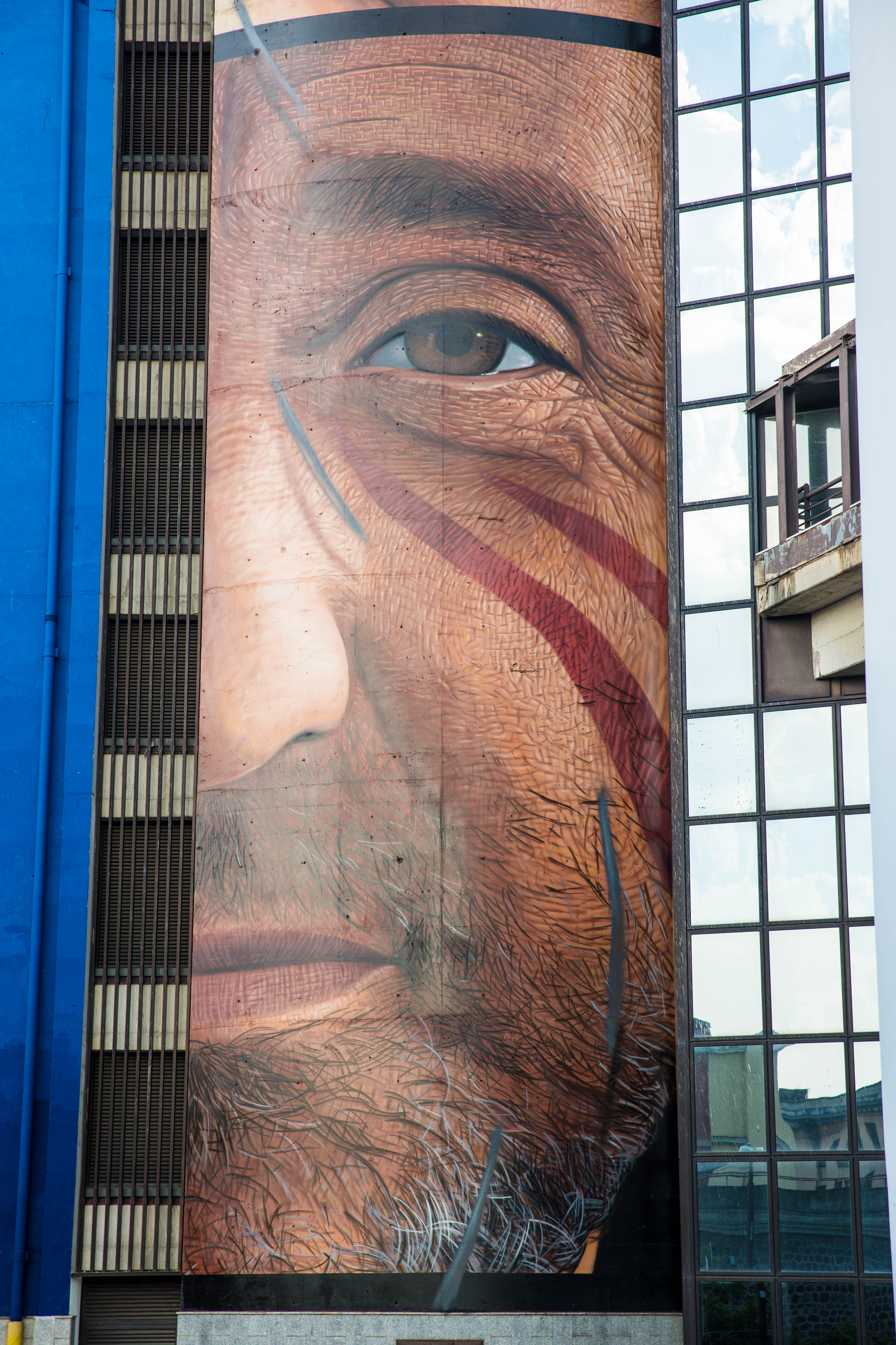 E’ il murale che contiene più scritte in assoluto, più di 500 i nomi dei fans che Jorit ha raccolto sui social e altri 8 messaggi nascosti tra le pennellate: questa l’essenza dell’opera realizzata dallo street artist napoletano per l’Universiade 2019, tra i grattacieli del centro direzionale di Napoli.