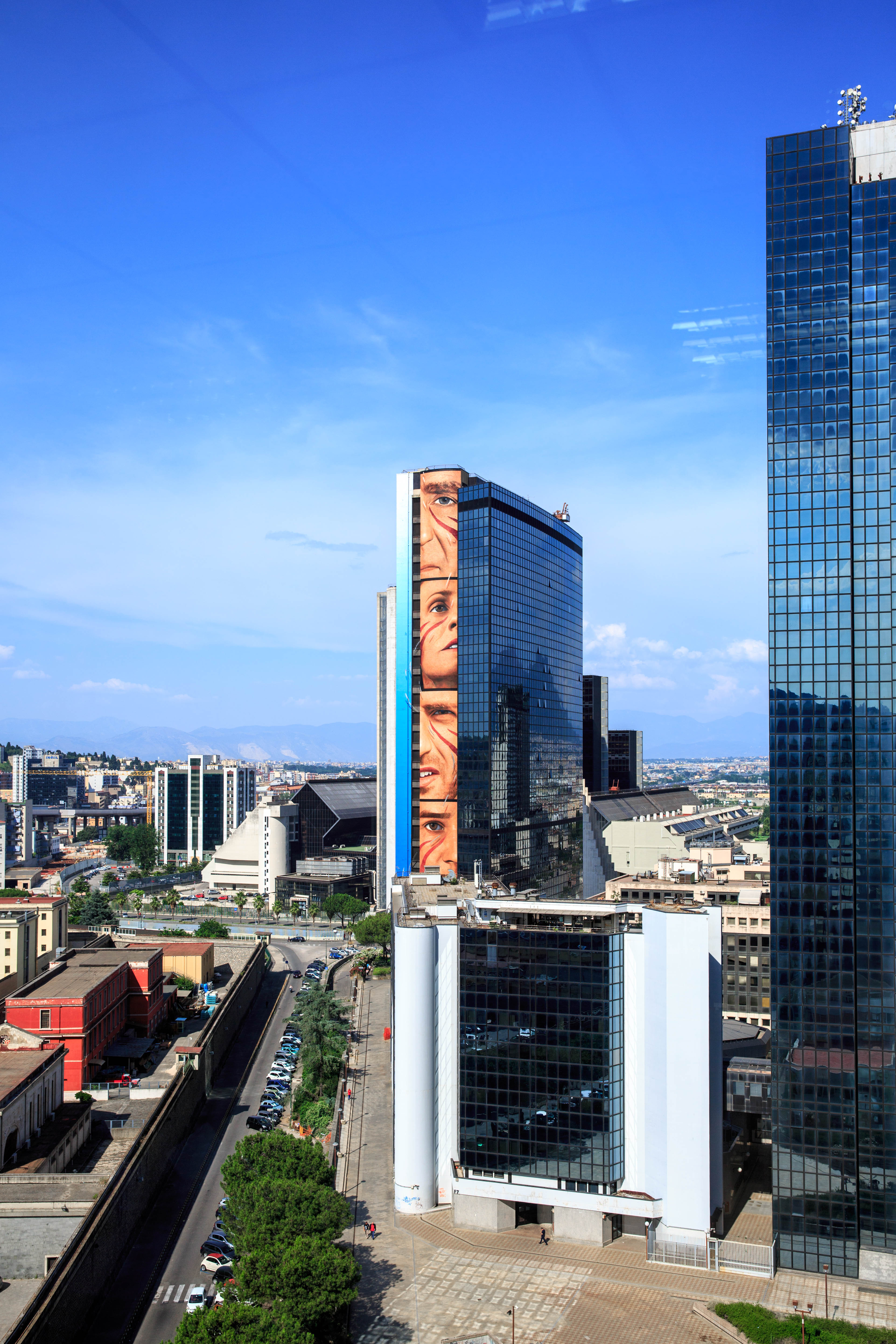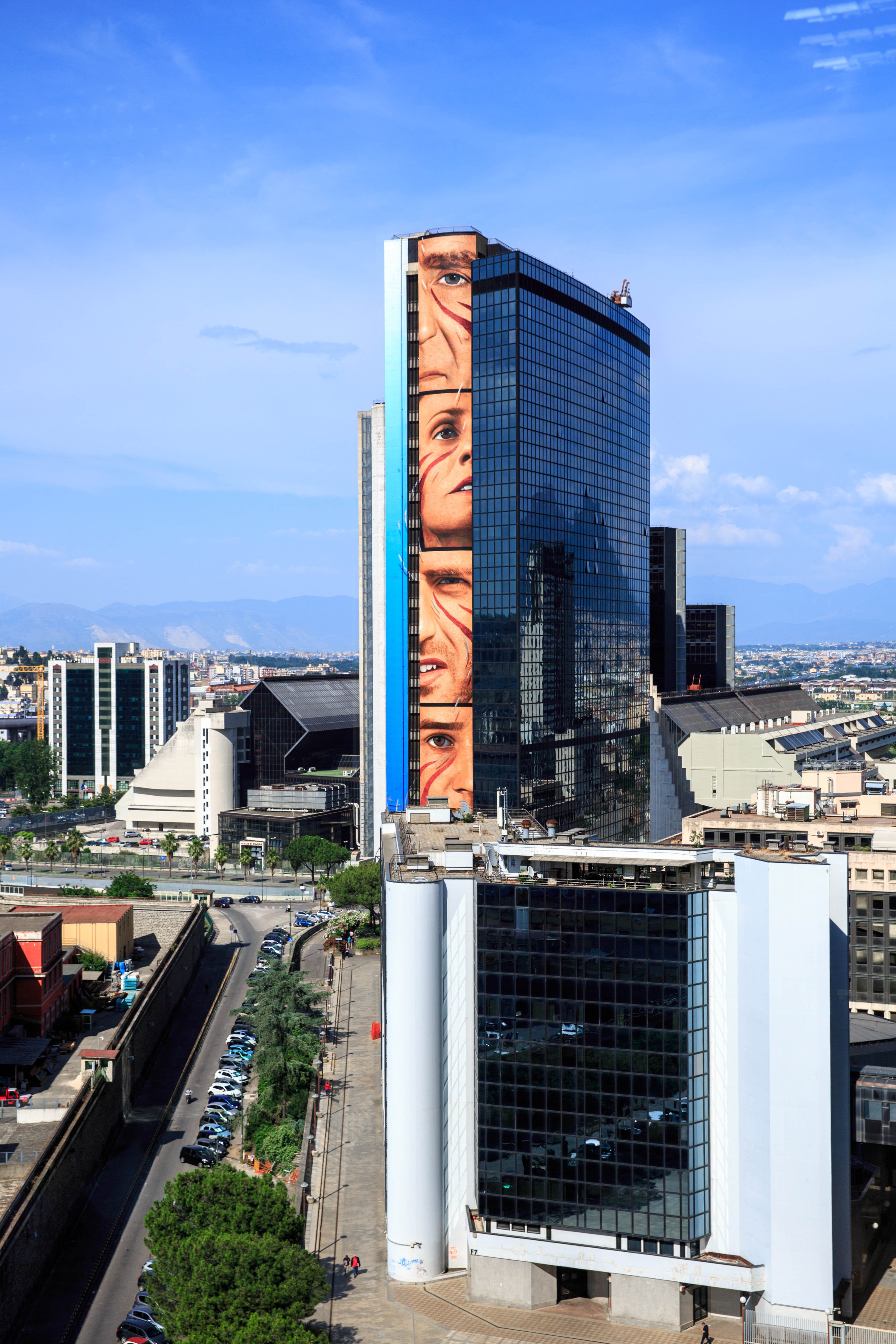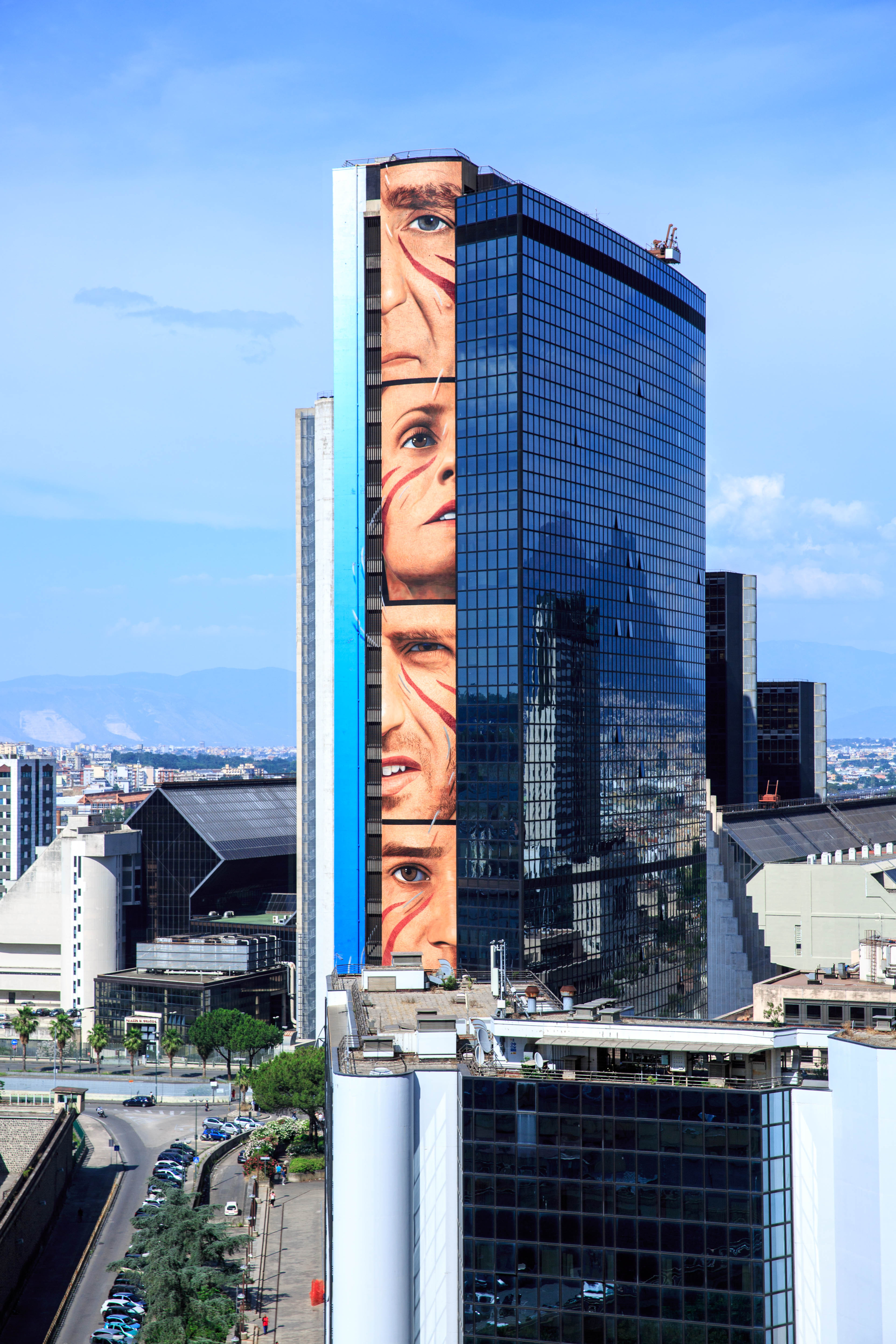 E’ il murale più alto del mondo mai realizzato, il record di Jorit al Centro Direzionale rappresenta cinque vere e proprie icone dello sport campano: dall’alto abbiamo Patrizio Oliva per Napoli, Antonietta De Martino per Salerno, Carmelo Imbriani per Benevento, Ferdinando Gentile per Caserta e Ferdinando De Napoli per Avellino.