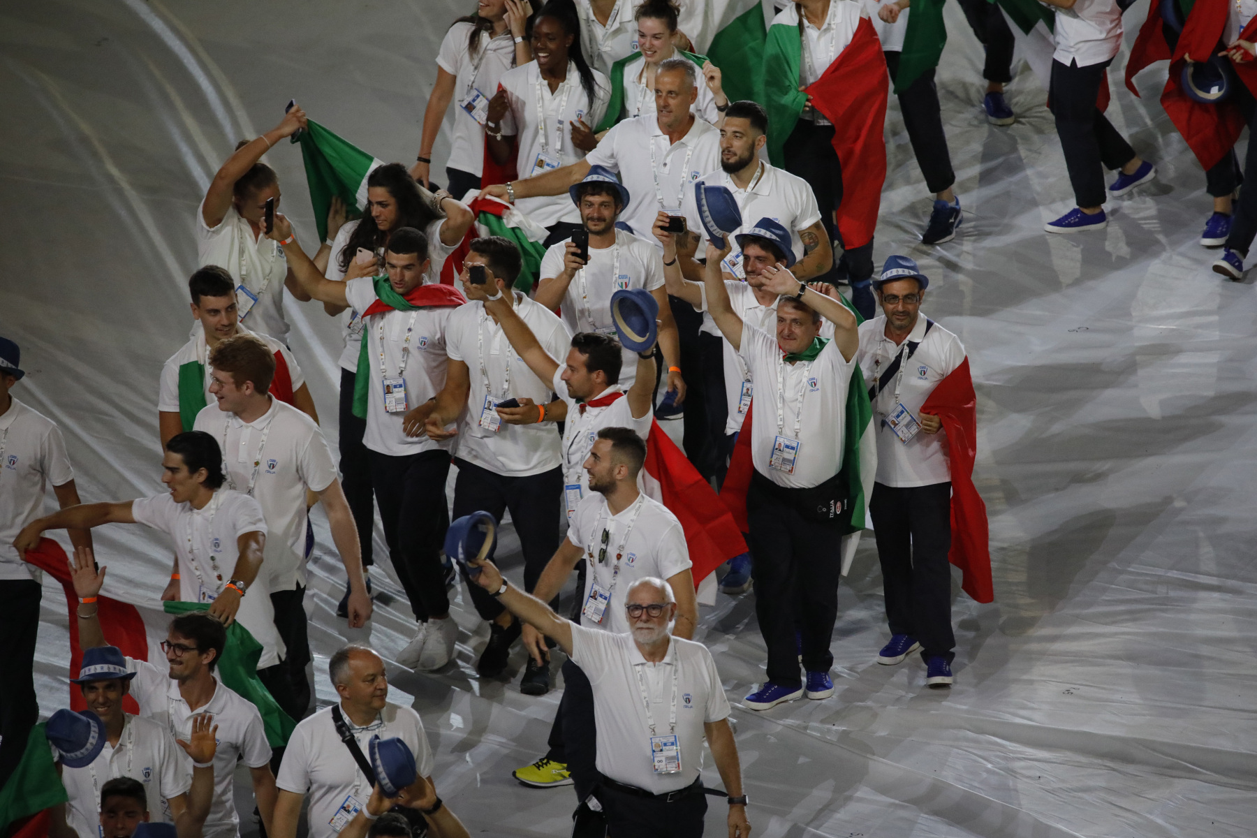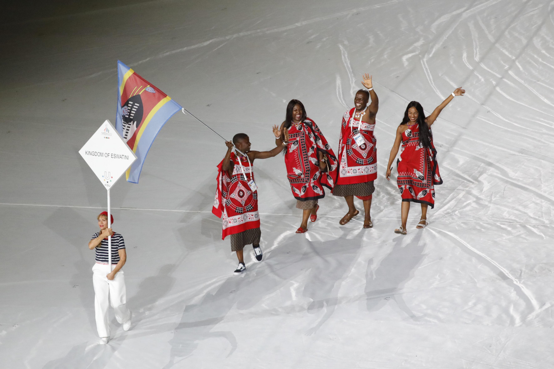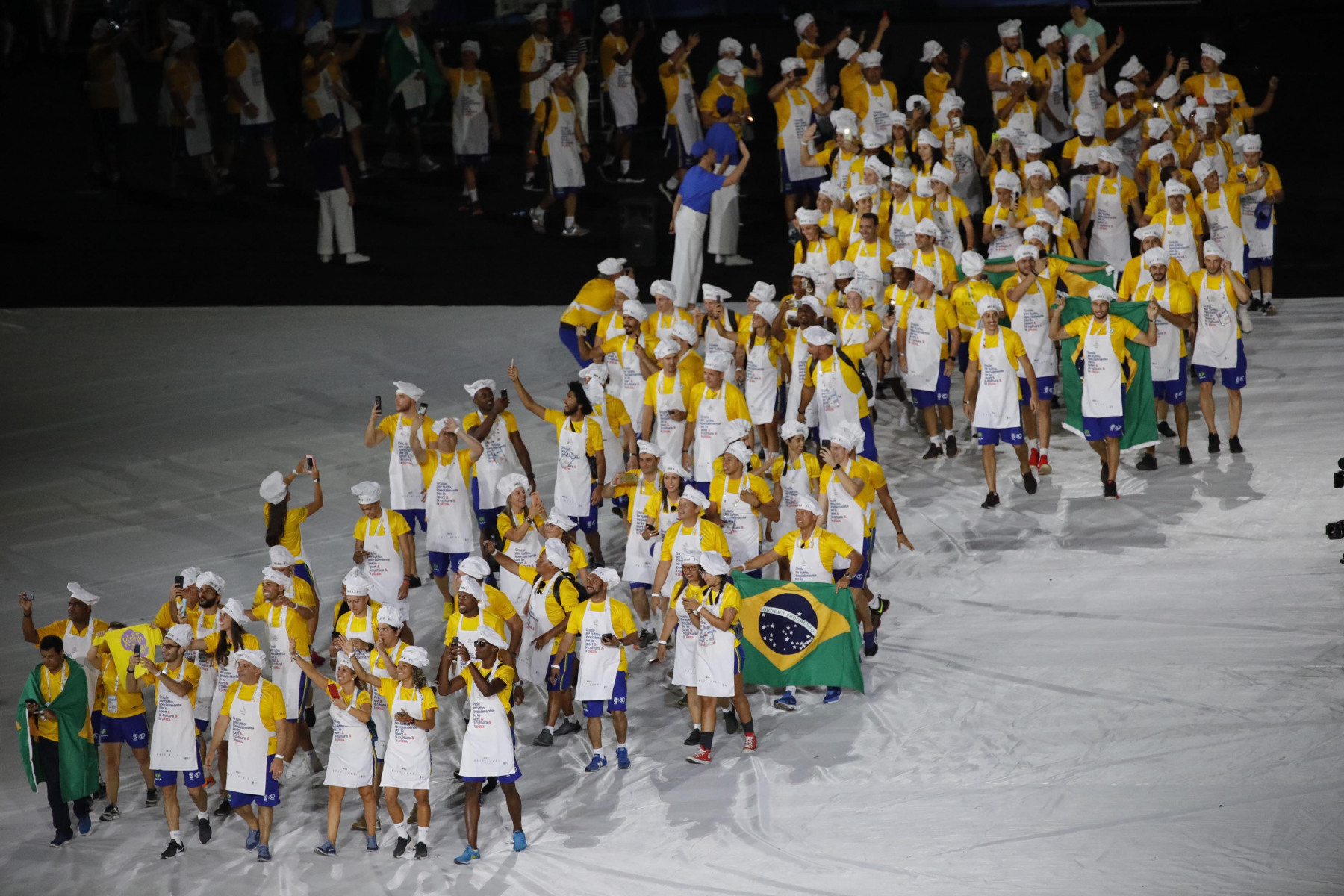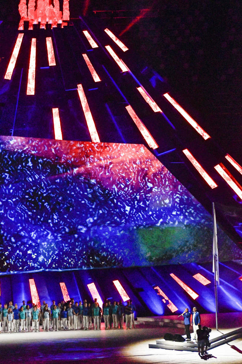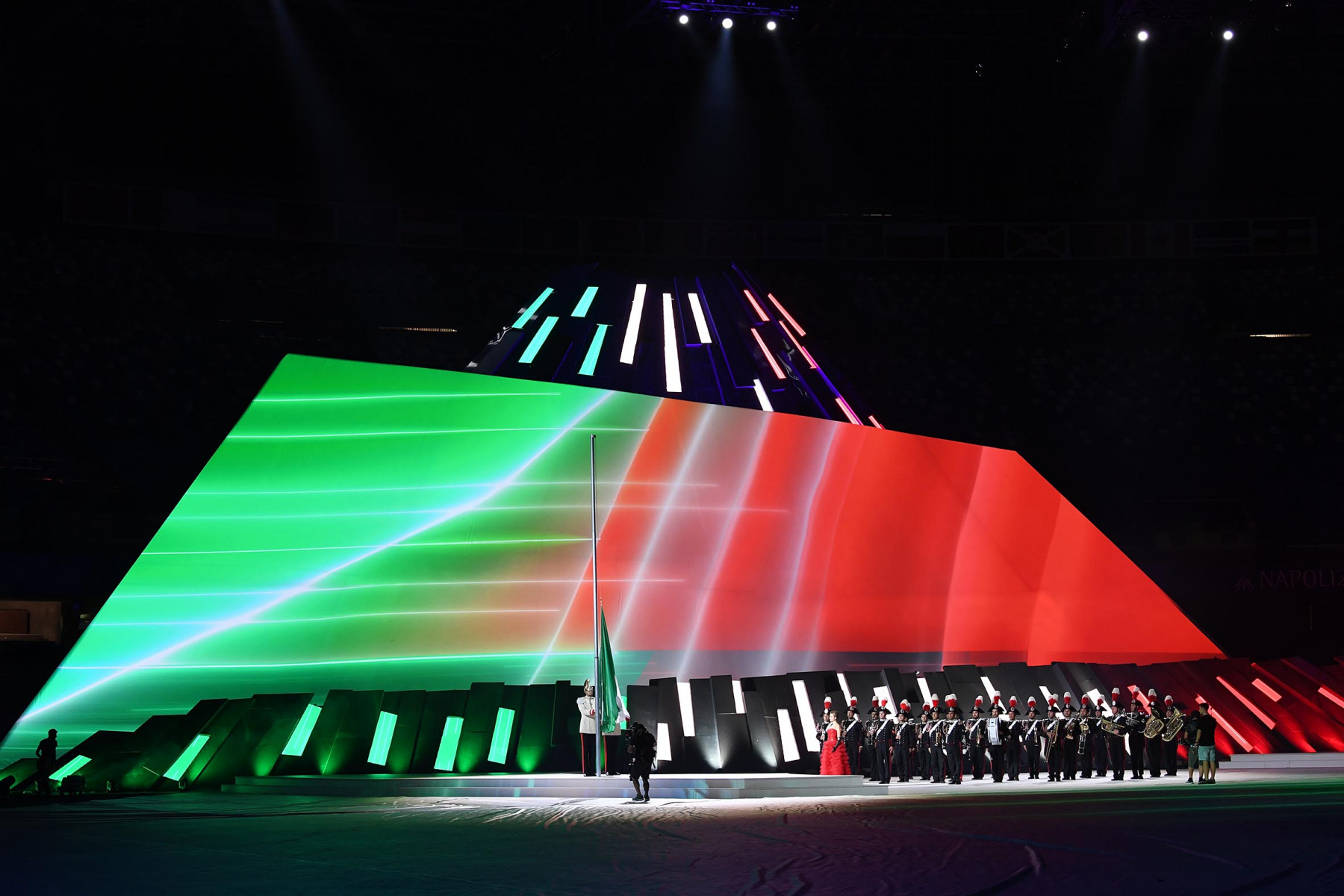 Colorata e folkloristica la sfilata delle delegazioni di tutto il mondo. Tra i protagonisti della cerimonia Napoli ha scelto di mettere in campo anche 40 rifugiati provenienti dall’Africa e dal Medio Oriente. I giovani hanno partecipato portando i cartelli con i nomi di alcuni Paesi durante la sfilata e aiutando il servizio d’ordine. Non sono mancati gli intermezzi musicali, con Malika Ayane ha cantato «L’italiano» di Toto Cutugno, mentre la fanfara dei Carabinieri ha eseguito l’Inno di Mameli, cantato in coro dal San Paolo. Il rapper Anastasio ha invece intonato una sua personale versione di «Another brick in the wall» dei Pink Floyd. E poco dopo, con il calcio a una palla di fuoco del capitano del Napoli Lorenzo Insigne, si è acceso il braciere della 30/a Universiade. Gran finale con il canto di un Bocelli in forma straordinaria.