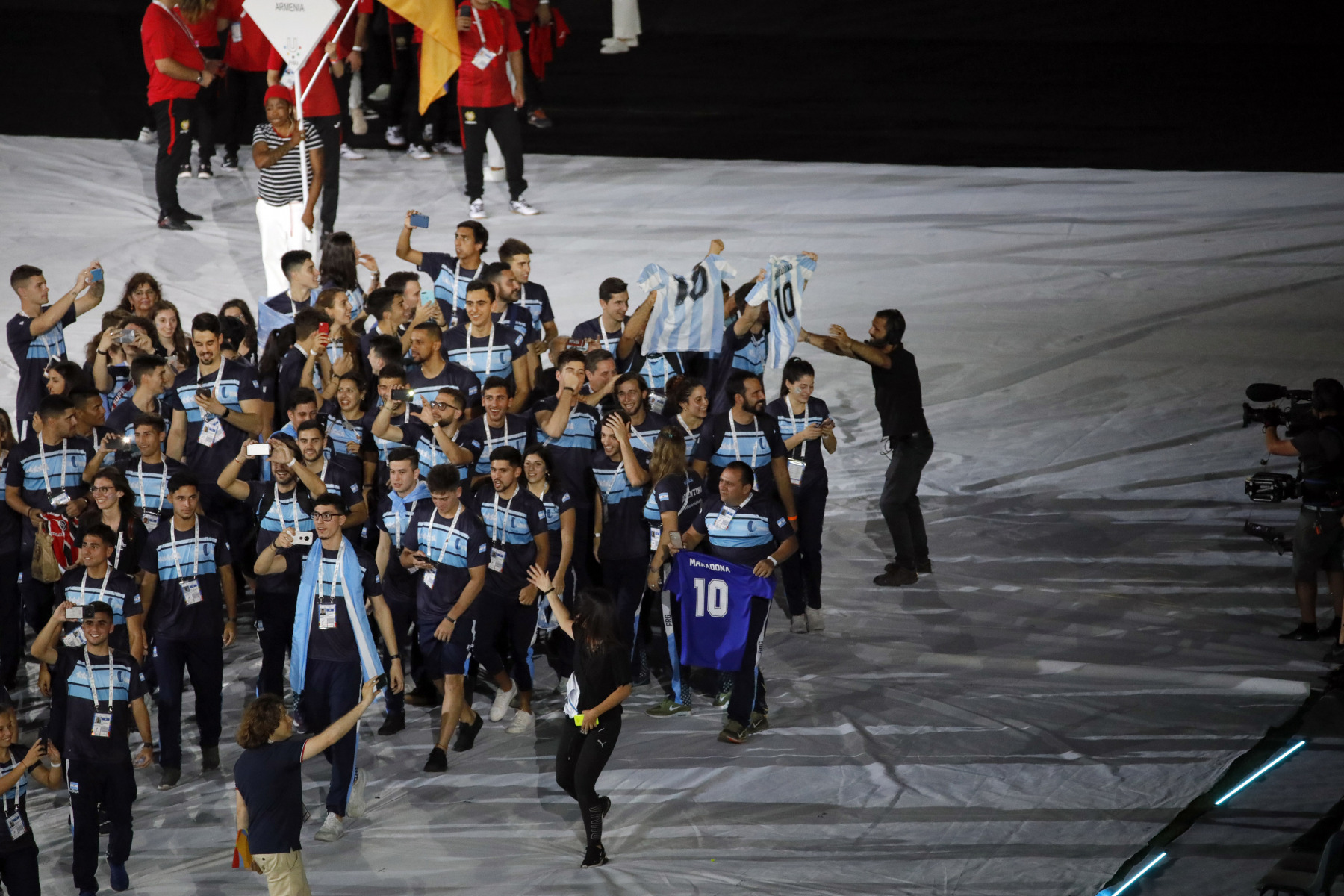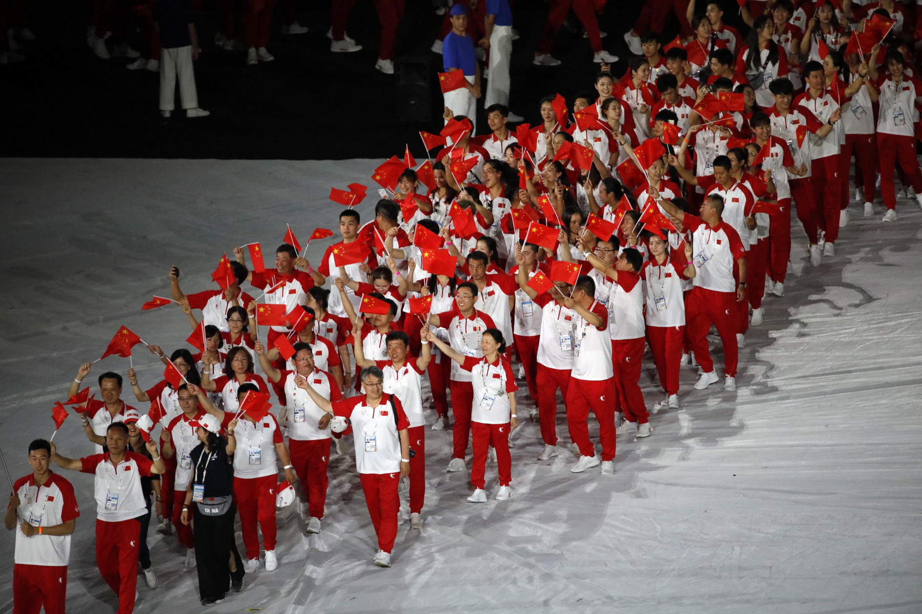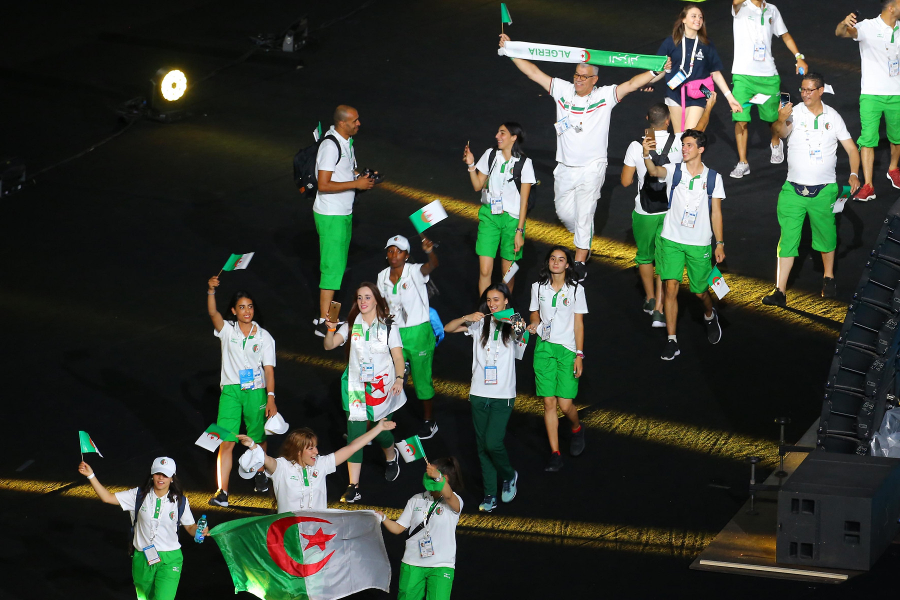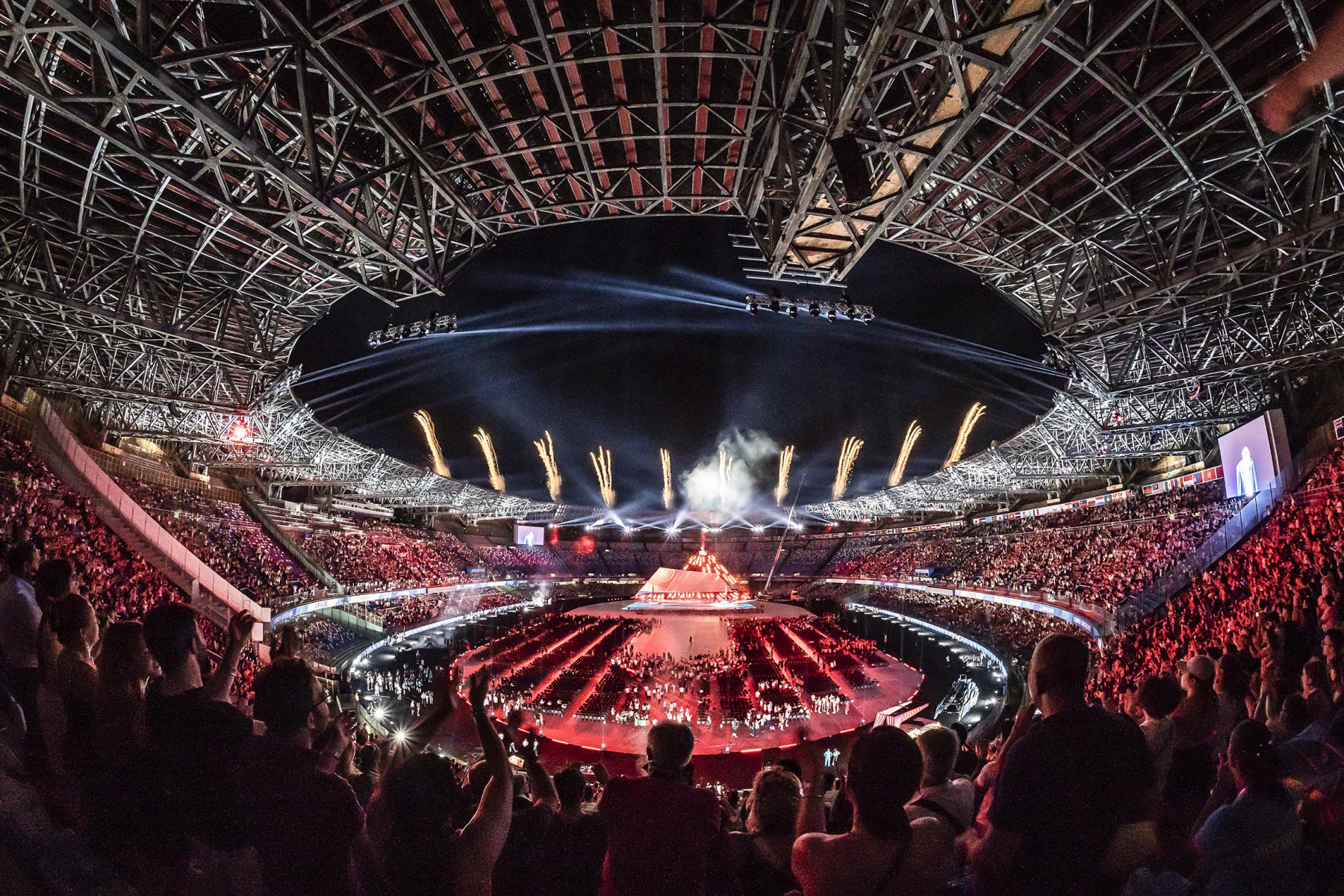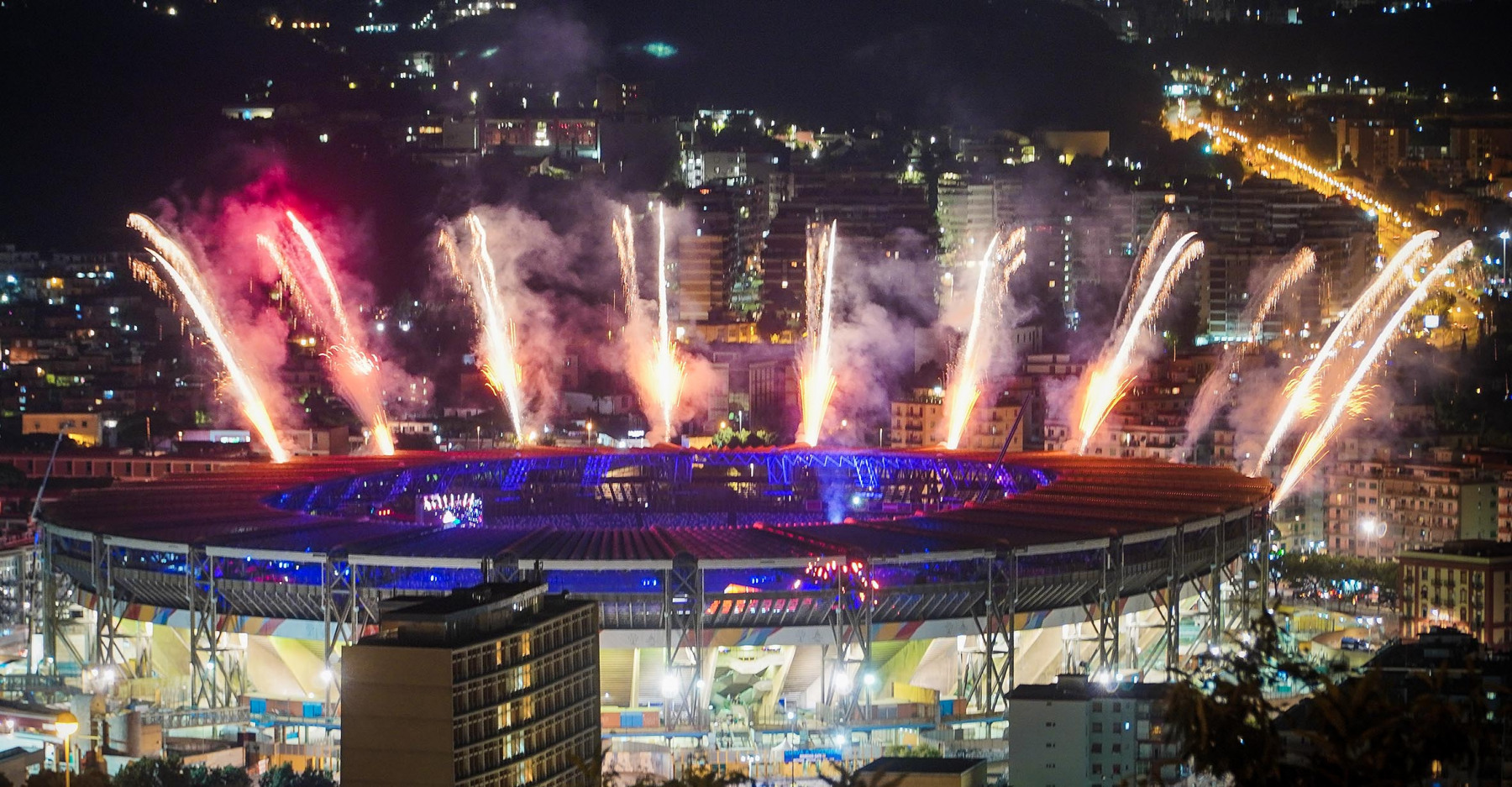 Colorata e folkloristica la sfilata delle delegazioni di tutto il mondo. Tra i protagonisti della cerimonia Napoli ha scelto di mettere in campo anche 40 rifugiati provenienti dall’Africa e dal Medio Oriente. I giovani hanno partecipato portando i cartelli con i nomi di alcuni Paesi durante la sfilata e aiutando il servizio d’ordine. Non sono mancati gli intermezzi musicali, con Malika Ayane ha cantato «L’italiano» di Toto Cutugno, mentre la fanfara dei Carabinieri ha eseguito l’Inno di Mameli, cantato in coro dal San Paolo. Il rapper Anastasio ha invece intonato una sua personale versione di «Another brick in the wall» dei Pink Floyd. E poco dopo, con il calcio a una palla di fuoco del capitano del Napoli Lorenzo Insigne, si è acceso il braciere della 30/a Universiade. Gran finale con il canto di un Bocelli in forma straordinaria.