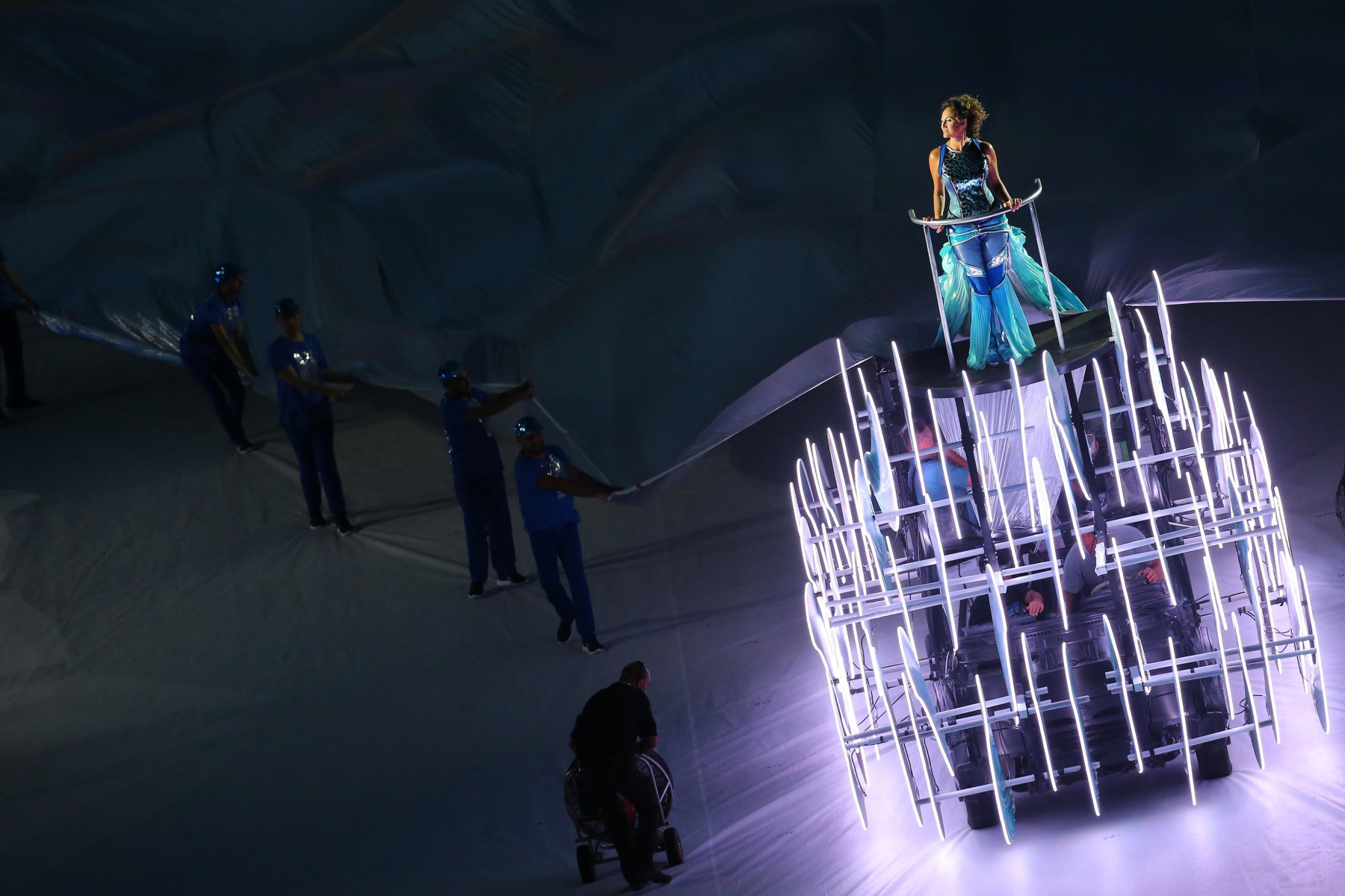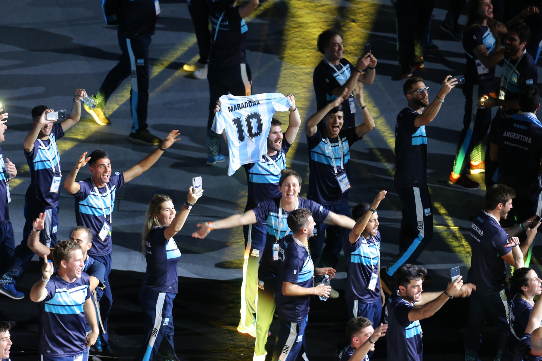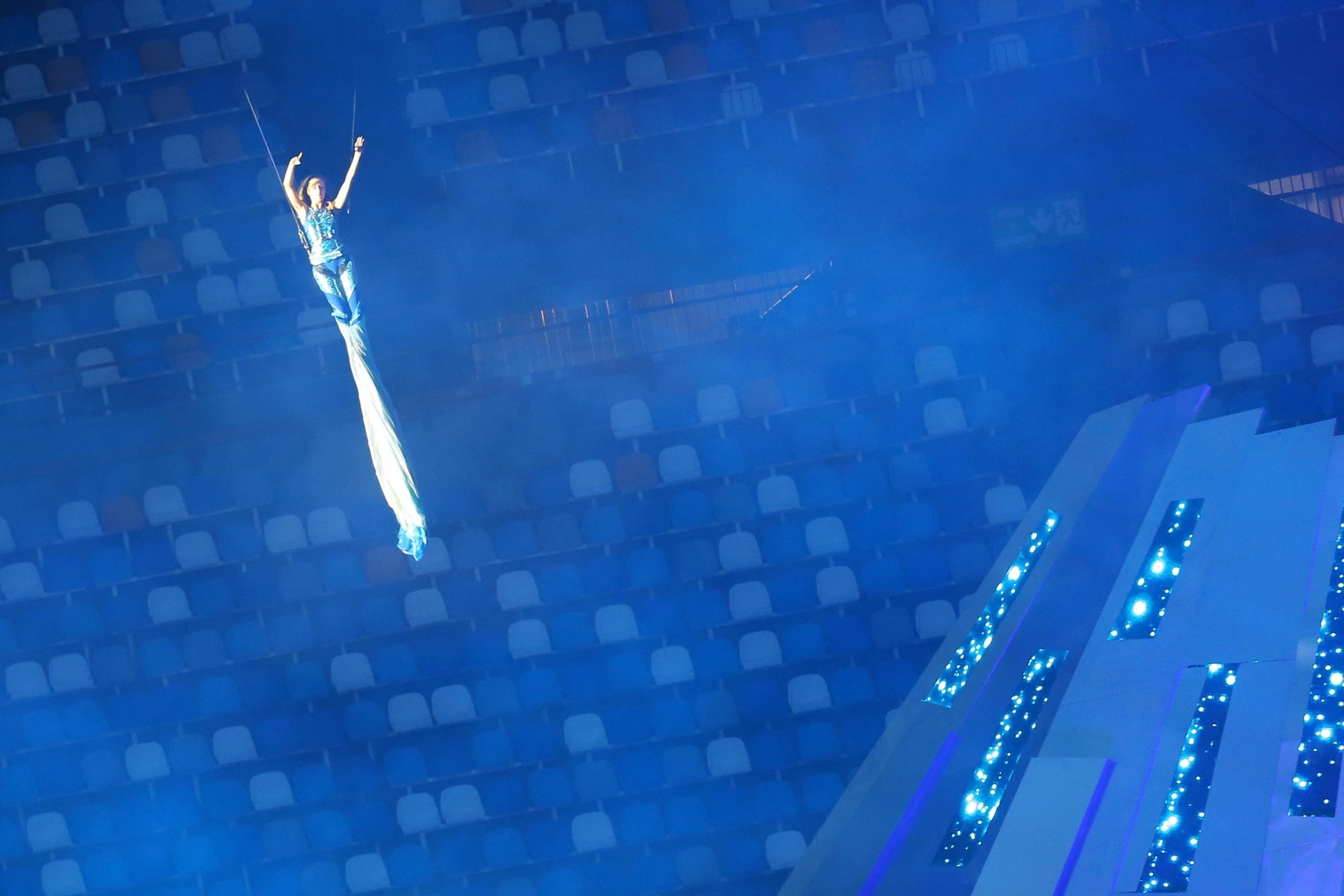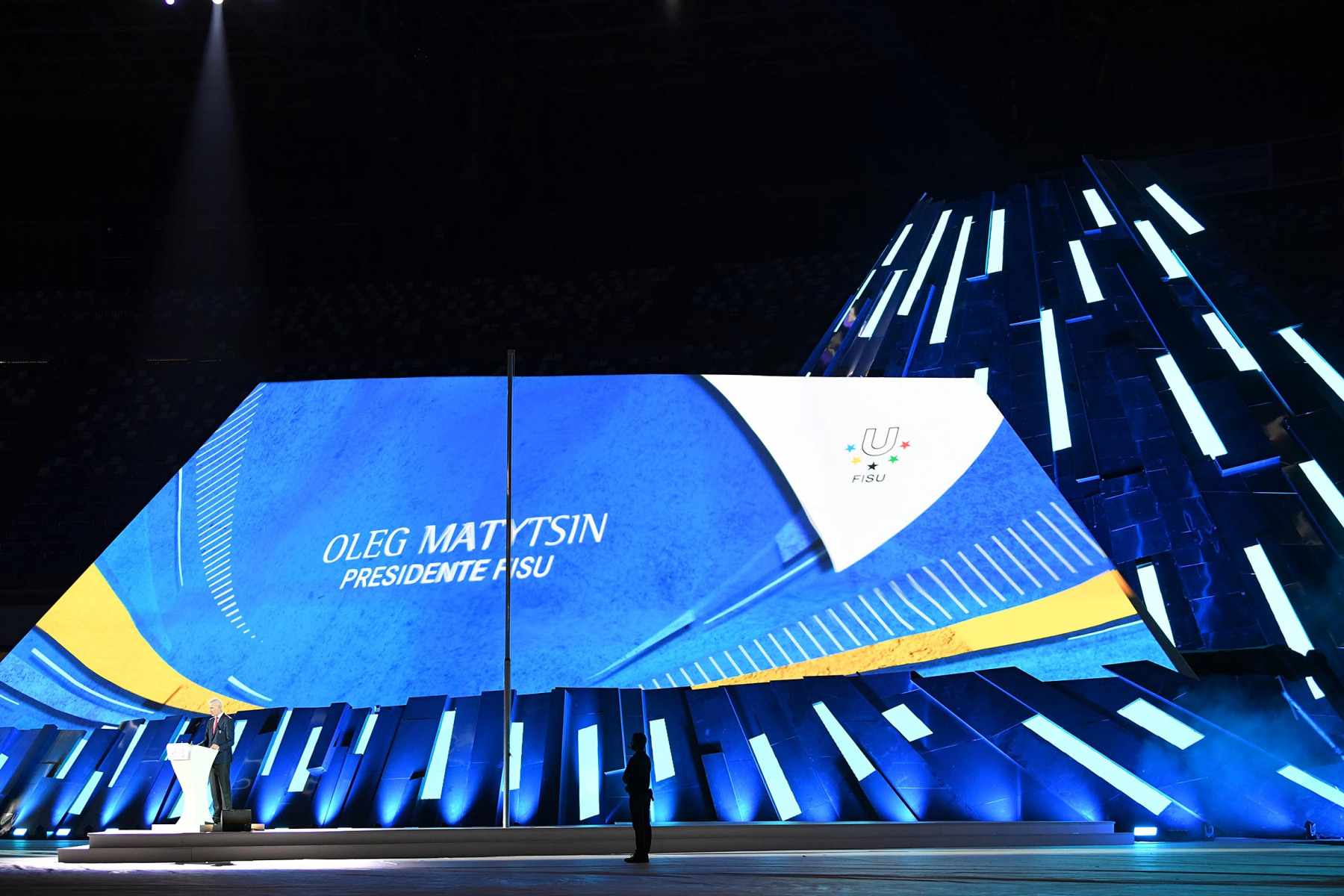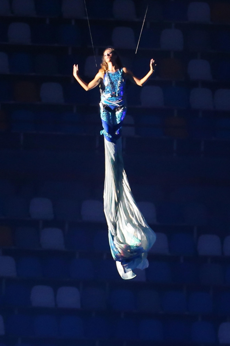 Uno show ricco di luci e suggestioni: dalla U del logo delle Universiadi, come concetto di unione, universalità e unicità, che si è accesa rappresentando due enormi braccia protese, al video countdown con i numeri della smorfia napoletana, fino al momento magico con l’ingresso di una sirena aerea, la sirena Partenope, interpretata dall’apneista partenopea Mariafelicia Carraturo. Partenope è avanzata con una coda argentata lunga 60 metri nello stadio che grazie a uno spettacolare gioco di luci ed effetti speciali, si è trasformata nel Golfo di Napoli, con il mare che ha invaso il terreno di gioco.