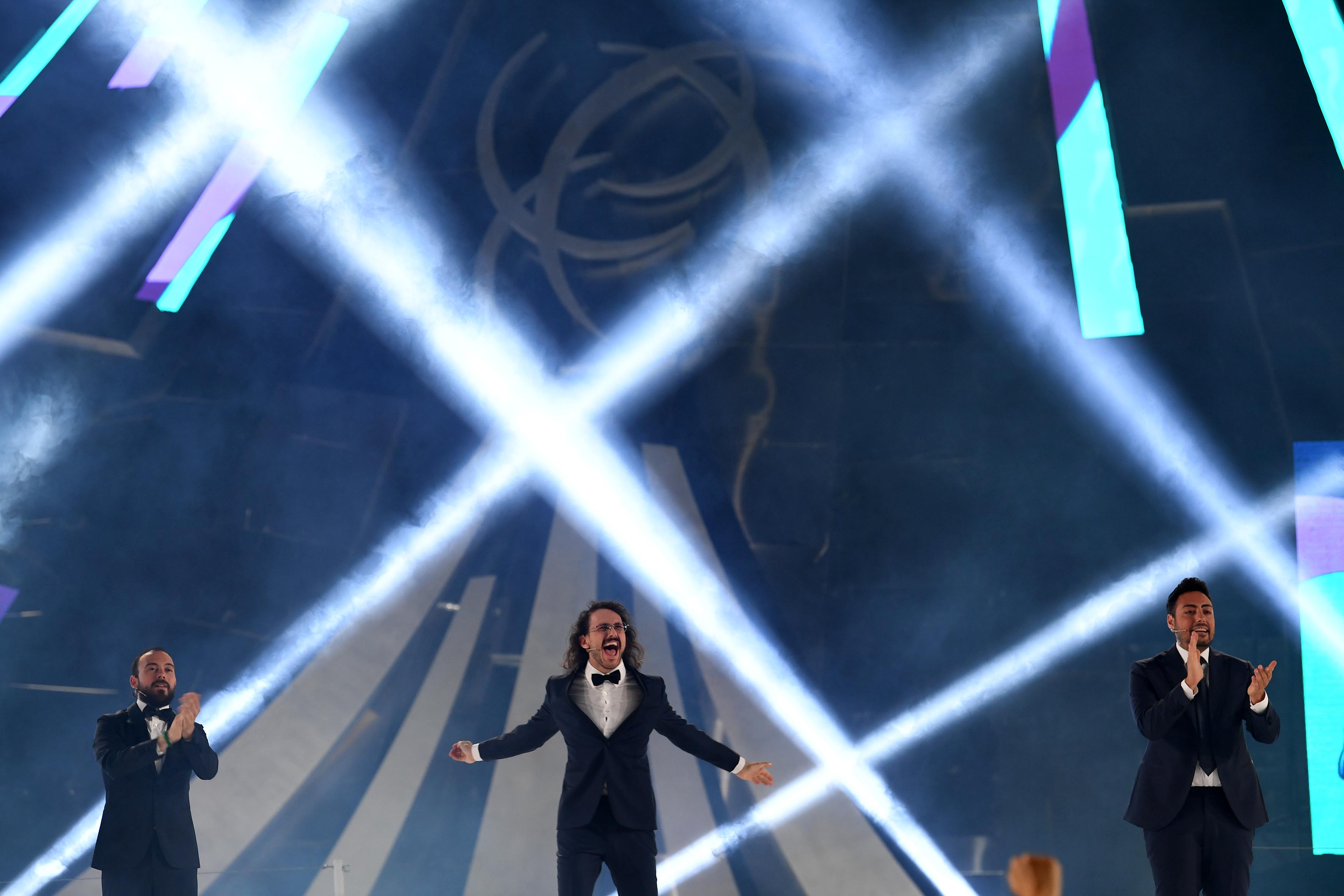 Mattatori della serata i The Jackal: “In un mondo che ci vuole divisi, l’unico modo per costruire qualcosa di veramente bello è restare uniti” ricollegandosi così all’inizio con il mare di Napoli – idealmente racchiuso dal San Paolo – che si riempie di barche, pronte a riportare gli atleti a casa, mentre uno scugnizzo legge la dichiarazione dei diritti universali dell’uomo.