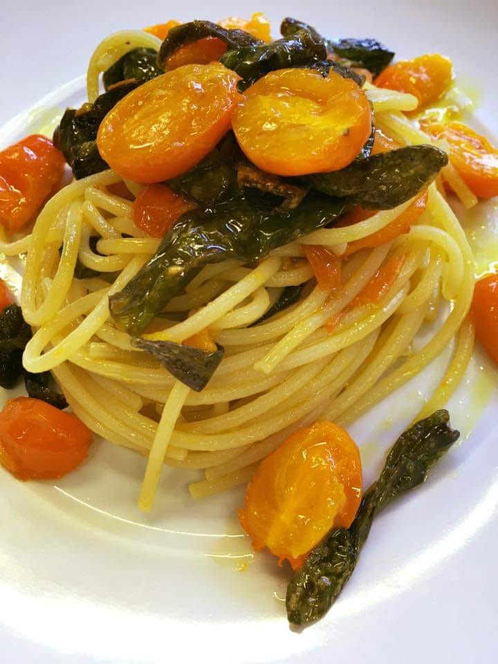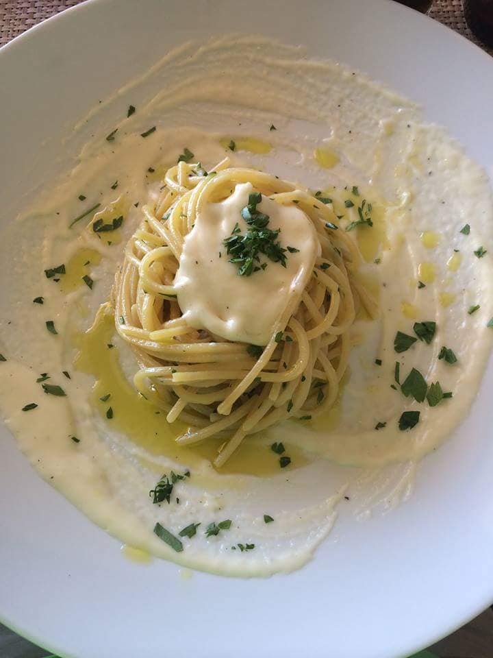 Tra i tanti ed invitanti piatti proposti, meritano una menzione speciale: le orecchiette patate e melanzane, lo spaghetto “solare” con pomodorini e peperoncini verdi, le tagliatelle con datterini, cozze e pesto fresco, lo scialatiello alla bufalina DOP, gli spaghetti aglio e olio su vellutata di patate e friarielli, il mezzo pacchero con guanciale croccante su vellutata di patate, le linguine al filetto di baccalà con origano e capperi di pantelleria, “le Genovette” le Polpette alla Genovese, gli spaghetti aglio e olio con fonduta di parmigiano.
