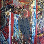 Lockdown/Social vede la luce in piena emergenza Covid-19 e si sviluppa da una serie di opere (tecnica mista su plastica) realizzate da Di Caterino con i pochi strumenti che aveva a disposizione in quel momento, quasi a significare come, nel bel mezzo del lockdown, l’unico strumento di comunicazione possibile, per l’artista, fosse il linguaggio dell’arte.