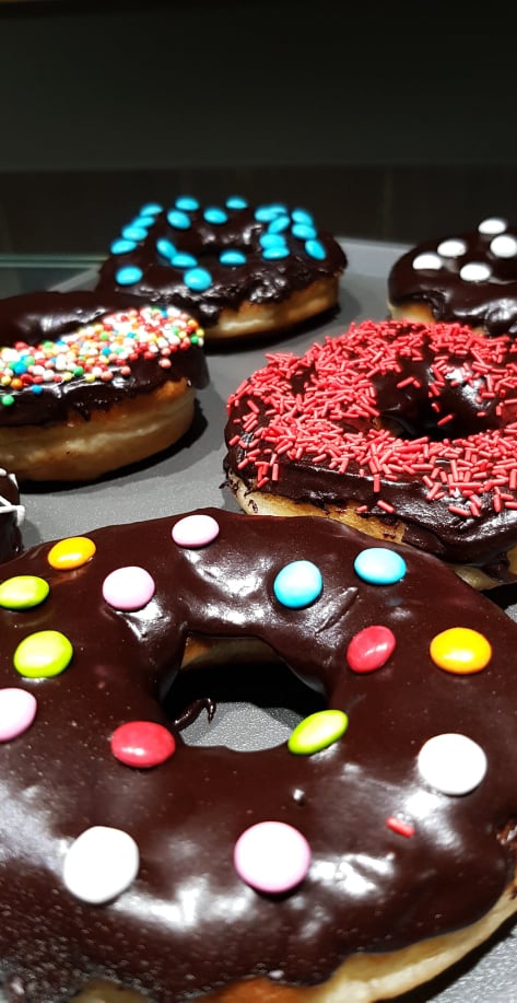 Budini, frullati, frappè, gelato artigianale, macedonia di frutta, latte di mandorla, yogurt con latte di bufala, torte, cinnamon rolls, tè aromatizzati, tutto prodotto artigianalmente, e soprattutto tantissimi donuts, fiore all’occhiello della pasticceria, rigorosamente artigianali.