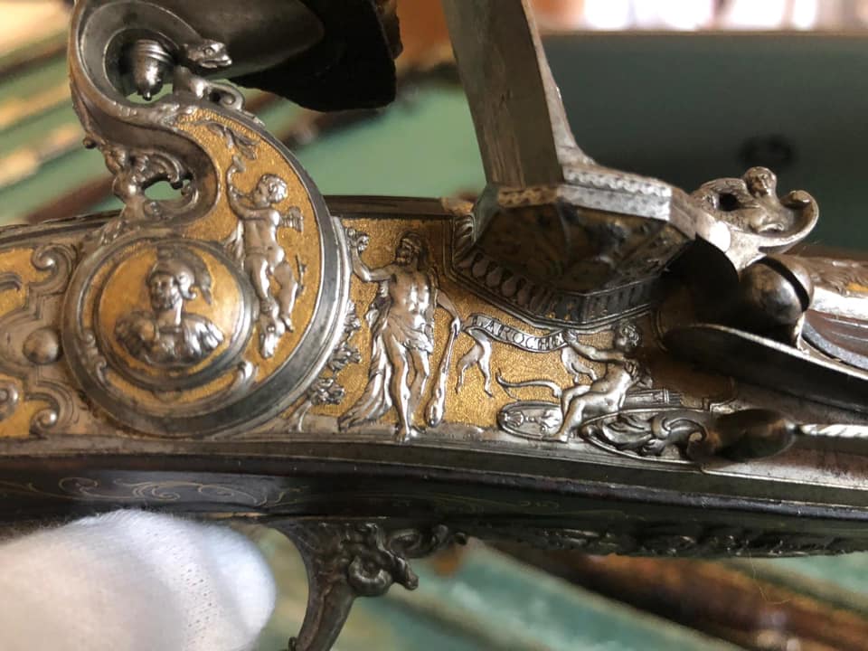 Le immagini ad alta definizione consentiranno di osservare particolari iconografici, difficilmente visibili ad occhio nudo e di analizzare i più minuti dettagli materici. Le informazioni sulle opere saranno raccolte in schede che andranno a formare il catalogo digitale del museo, da rendere poi accessibile al grande pubblico. Tra i tanti cimeli storici dell’Armeria, sotto la sapiente guida del restauratore Antonio Tosini esperto di armature, è stata digitalizzata in questi giorni una coppia di pistole donate da Luigi XV a Carlo di Borbone nel 1751 in occasione della nascita dell’erede al trono Ferdinando.