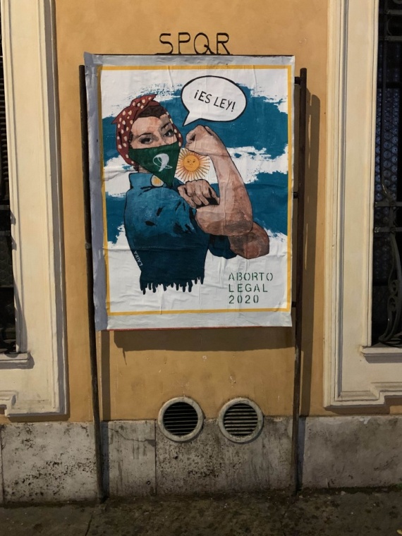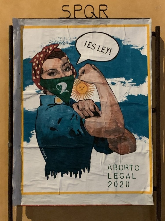 L’opera è un rifacimento del famoso poster “We can do it!“, risalente al periodo della Seconda Guerra Mondiale, e celebra la legalizzazione dell’aborto in Argentina.