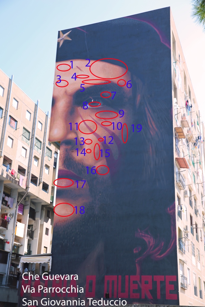 Non tutti sanno che nei suoi murales sono nascosti dei messaggi, parole e frasi che ne ampliano il significato: nomi di persone del luogo, testimonianze e motti rivoluzionari celati sapientemente dall’artista alla luce del Sole, aiutato spesso dai componenti della sua crew, Tukios e Calaveras.