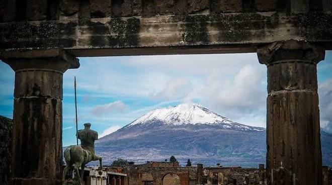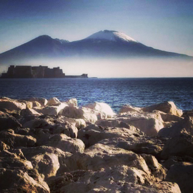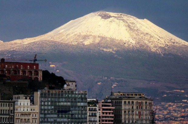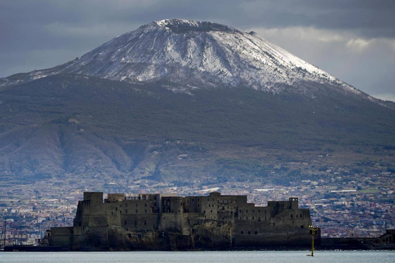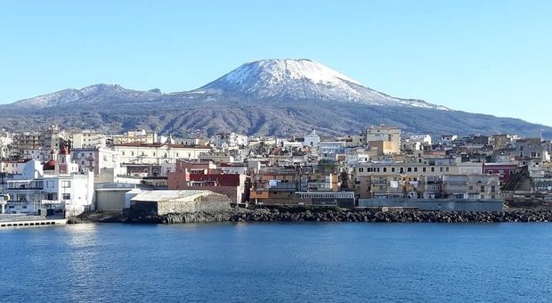 Un risveglio molto suggestivo per i napoletani che hanno potuto ammirare il Vesuvio innevato, lambito da un caldo sole che ha smorzato il gelo che spira sulla città.