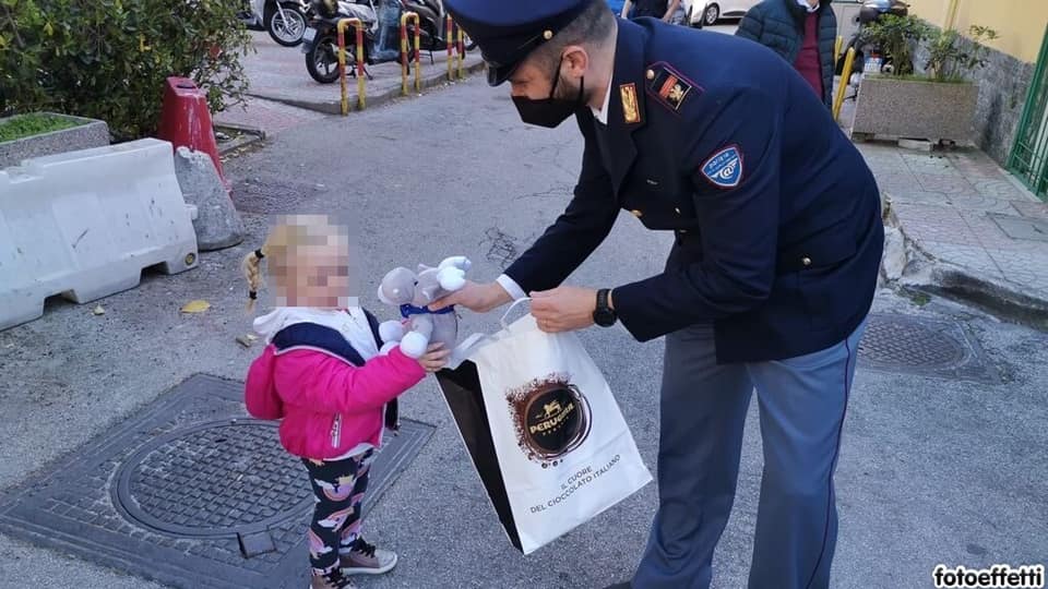 Durante la mattinata di mercoledì 31 marzo, il personale della Questura di Napoli e del Compartimento Polizia Postale e delle Comunicazioni della Campania, in collaborazione con la Nestlé Italia, ha donato delle uova di cioccolato e dei gadget della Polizia di Stato a bambini in cura presso gli ospedali Santobono e Pausilipon.