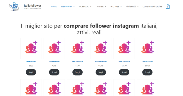 Il numero 1 è Italiafollower.it. Fastabonnes è uno dei migliori siti per ottenere seguaci instagram italiani. Possono fornirti follower di ottima qualità, le persone che si iscrivono sono attive sulla piattaforma, cioè che hanno un bel po’ di follower, che pubblicano post e storie, ma soprattutto che possono vedere le tue storie e mettere “mi piace” alle tue pubblicazioni. A parte le tariffe offerte che sono attraenti, ciò che differenzierà veramente questo sito dagli altri è davvero la qualità dei seguaci forniti che sono reali e attivi.