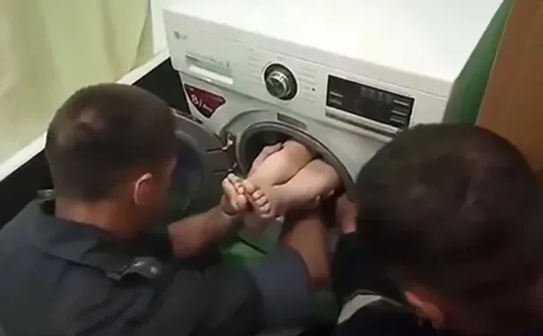 È tornato ad essere virale sui social media un vecchio video con alcuni soccorritori impegnati ad estrarre una ragazza da una lavatrice.