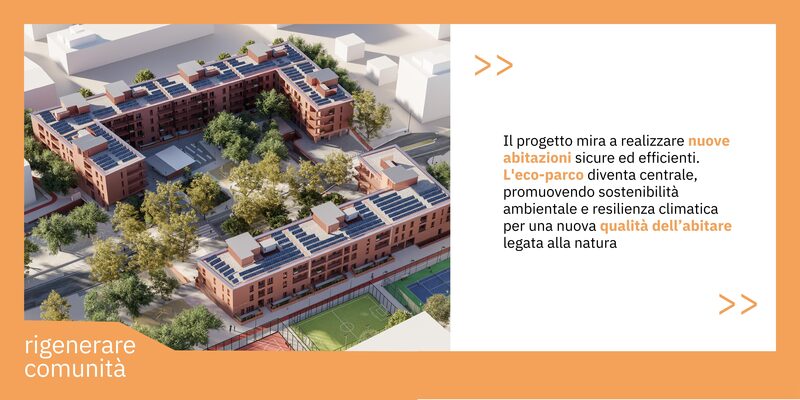 Il progetto prevede la demolizione delle strutture esistenti e la costruzione di nuovi edifici sicuri ed efficienti dal punto di vista energetico. Un’attenzione particolare è rivolta alla creazione di un eco-parco per promuovere la rinaturalizzazione della zona e fornire spazi per l’incontro e la socializzazione. Inoltre, il progetto mira a creare un ambiente più aperto e coeso, migliorando gli spazi pubblici, sviluppando nuove infrastrutture e garantendo servizi accessibili a tutti.