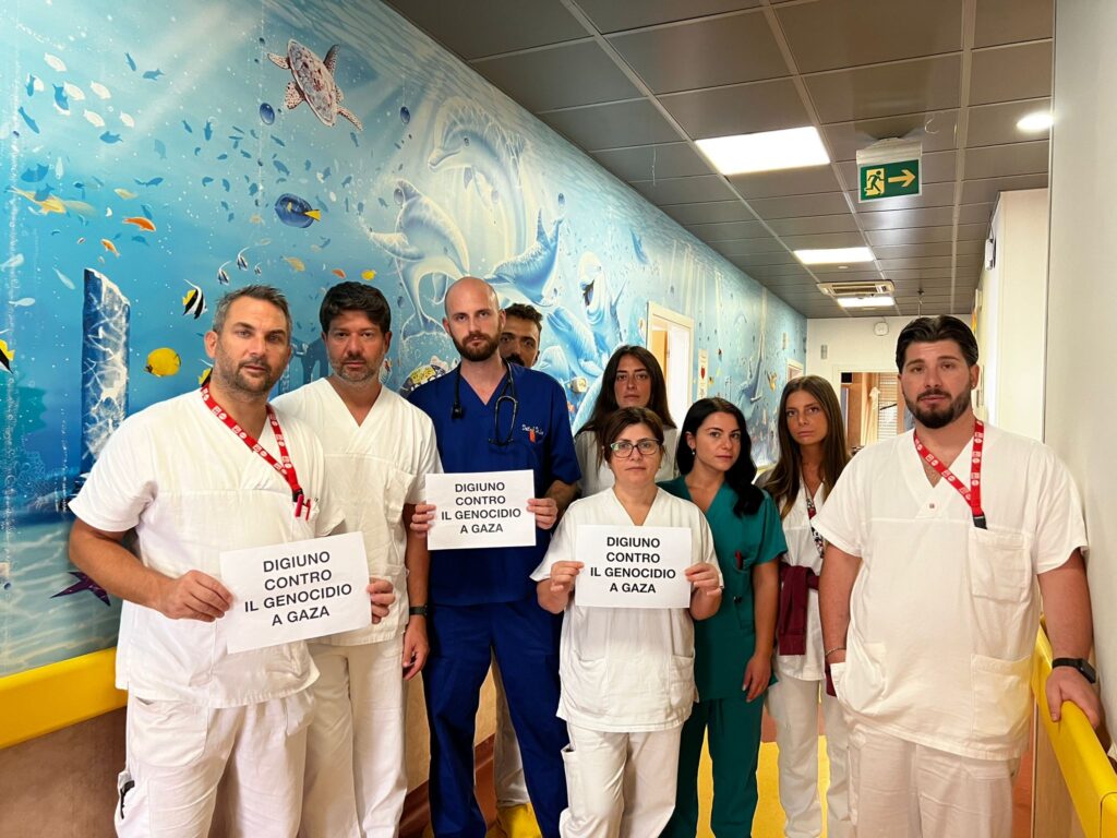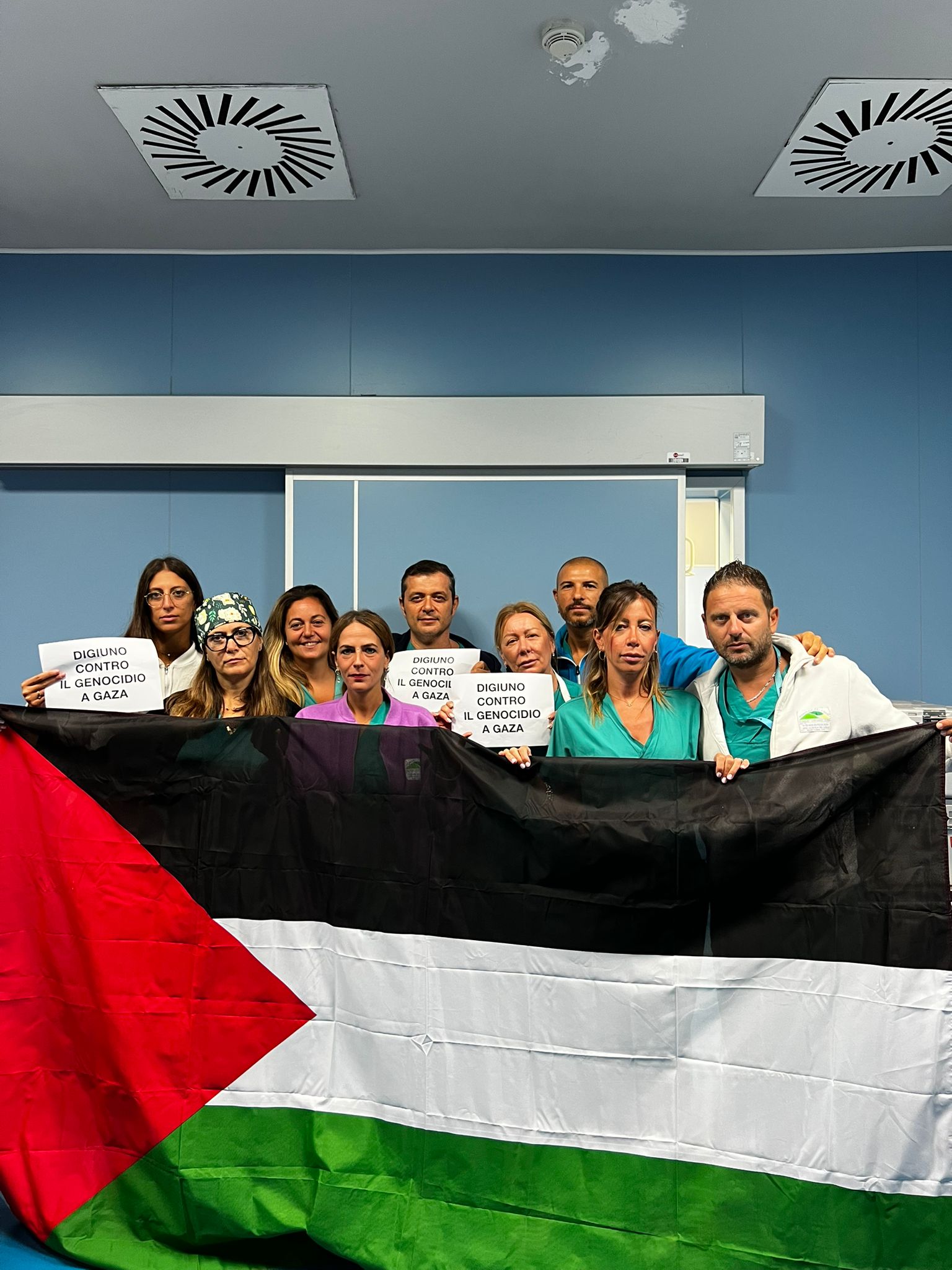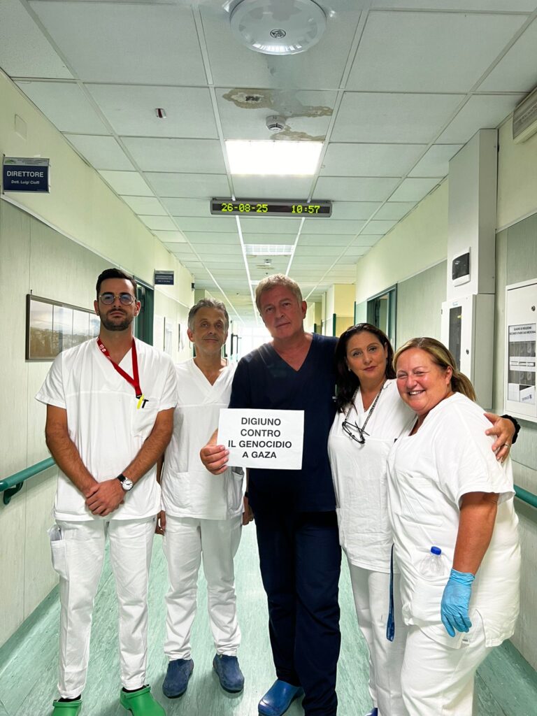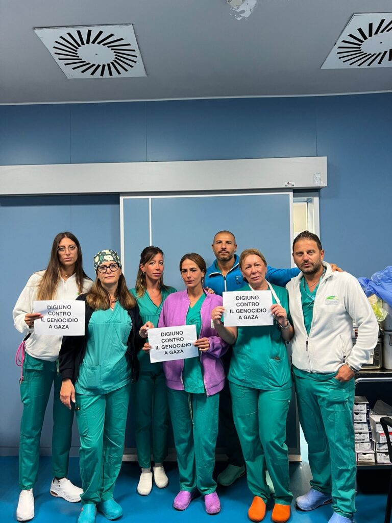 Con un gesto silenzioso ma denso di significato, gli operatori si sono mostrati con in mano un foglio recante la scritta: “Digiuno contro il genocidio a Gaza”, esprimendo la loro vicinanza alle popolazioni civili colpite dal conflitto e ribadendo il valore universale della cura, della solidarietà e della vita.