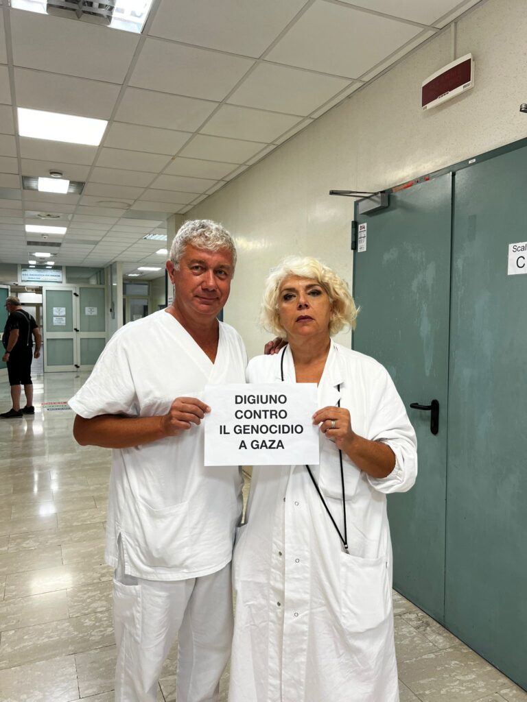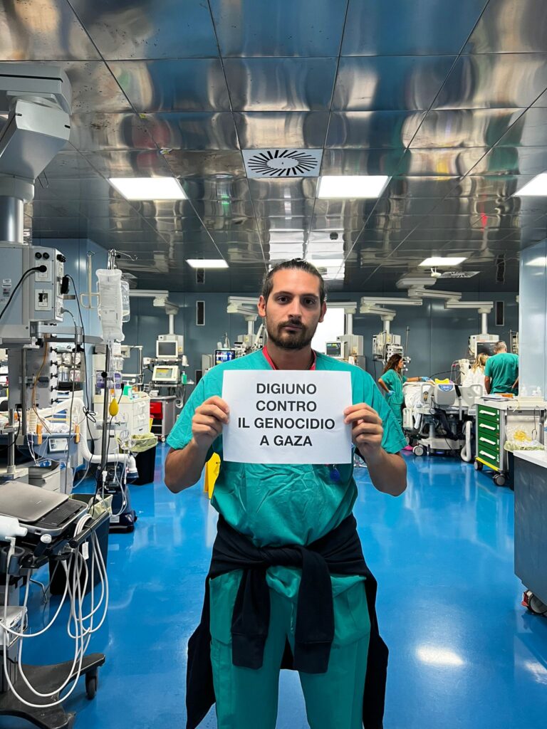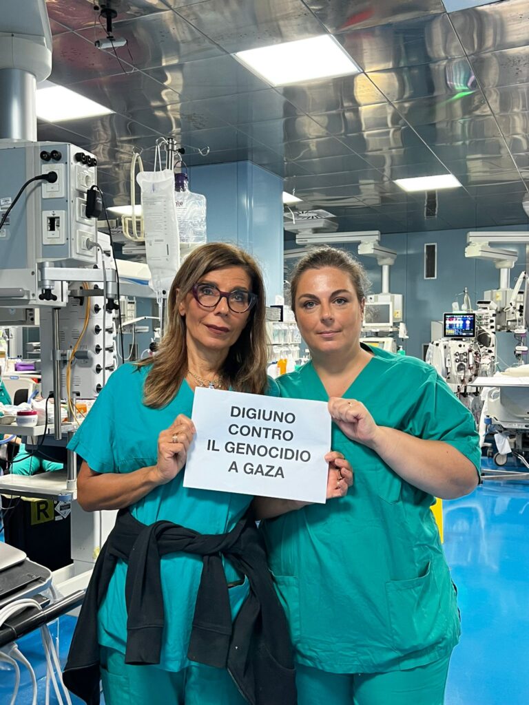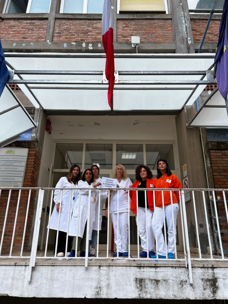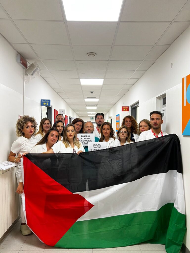 Con un gesto silenzioso ma denso di significato, gli operatori si sono mostrati con in mano un foglio recante la scritta: “Digiuno contro il genocidio a Gaza”, esprimendo la loro vicinanza alle popolazioni civili colpite dal conflitto e ribadendo il valore universale della cura, della solidarietà e della vita.