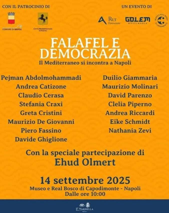 L’evento, promosso dalla Fondazione Rut e dalla Fondazione Piero Fassino, prevedeva tra i relatori l’ex premier israeliano Ehud Olmert, figura controversa per il suo ruolo nell’operazione “Piombo Fuso” del 2008-2009, che causò centinaia di vittime civili a Gaza. Accanto a lui, nomi di rilievo della politica e della cultura italiana come Maurizio De Giovanni, Stefania Craxi, Claudio Cerasa e Piero Fassino.