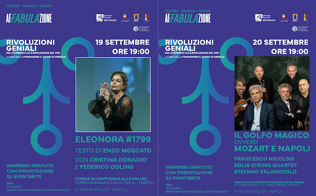 Prosegue il suo cammino “Rivoluzioni Geniali – dal Viceregno spagnolo alla Rivoluzione del 1799“, la rassegna che porta la storia napoletana nei luoghi periferici della città valorizzando gli spazi meno battuti dal grande circuito dello spettacolo. Dopo il successo del primo weekend, il progetto – organizzato dalla Fondazione Il Canto di Virgilio sotto la direzione artistica di Carlo Faiello – entra nel vivo con il suo secondo appuntamento, 19 e 20 settembre 2025, in due location di straordinario valore storico-artistico della Municipalità 4 (Poggioreale e Zona Industriale): la Chiesa di Sant’Anna alle Paludi (corso Arnaldo Lucci) e la Chiesa di San Giuseppe Maggiore dei Falegnami (via Carlo Bussola).