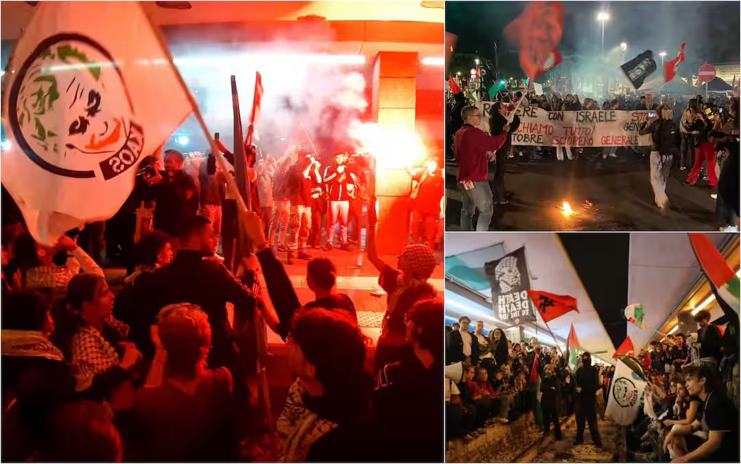 Da Roma a Napoli, da Milano a Genova: proteste, presidi e blocchi ferroviari in oltre 30 città italiane dopo l’attacco alla Global Sumud Flotilla.