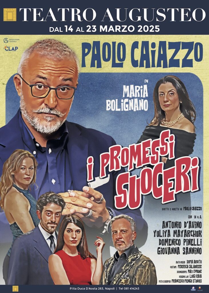 Debutta al teatro Sannazaro venerdì 31 ottobre I promessi suoceri scritto e diretto da Paolo Caiazzo che è anche interprete con Maria Bolignano, Antonio D’avino, Yulia Mayarchuk, Domenico Pinelli, Giovanna Sannino.