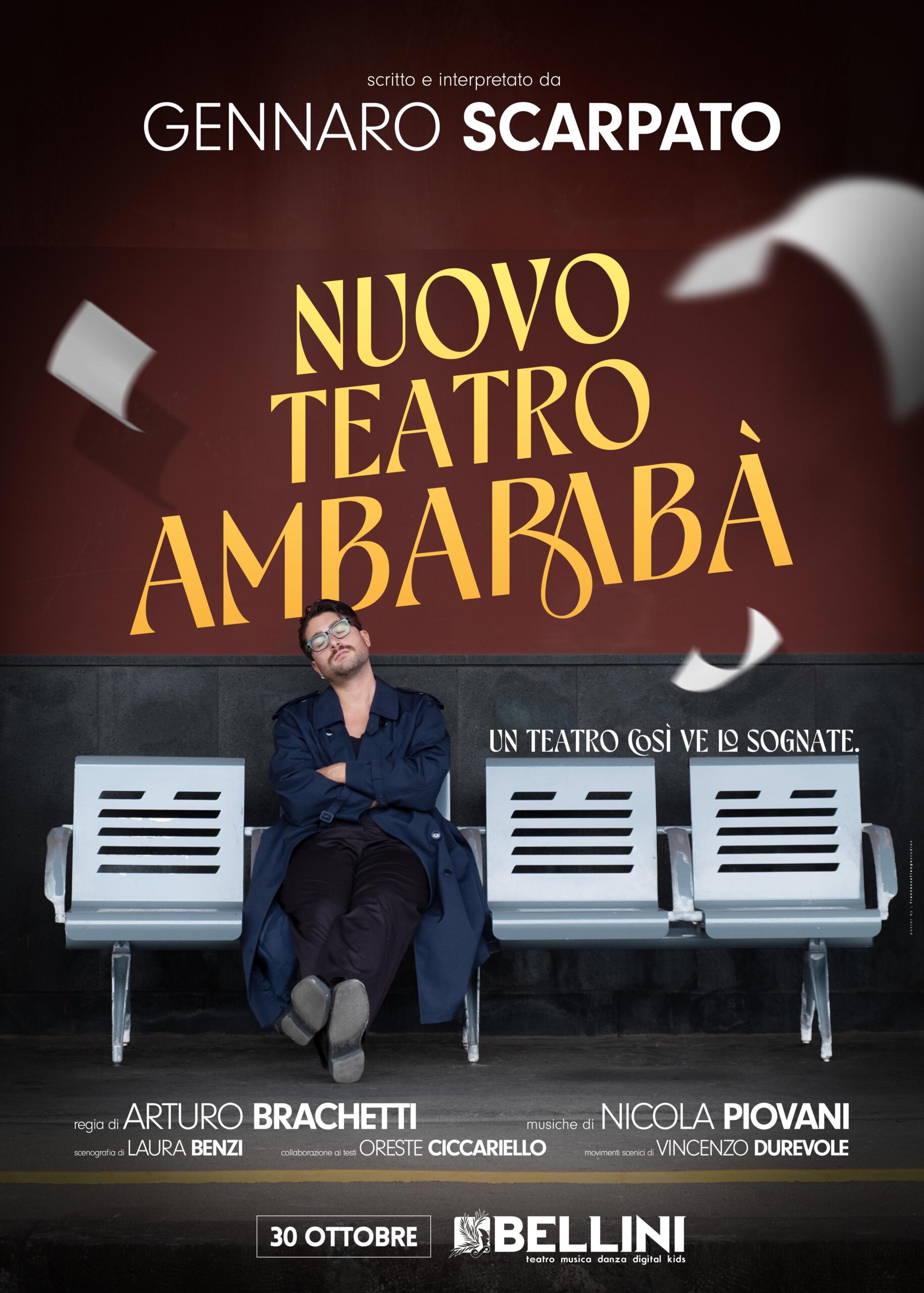 Gennaro Scarpato torna in scena sul prestigioso palco del Teatro Bellini di Napoli giovedì 30 ottobre con Nuovo Teatro Ambarabà, spettacolo di cui è autore e interprete per la regia di eccezione di Arturo Brachetti e le musiche del Premio Oscar Nicola Piovani.