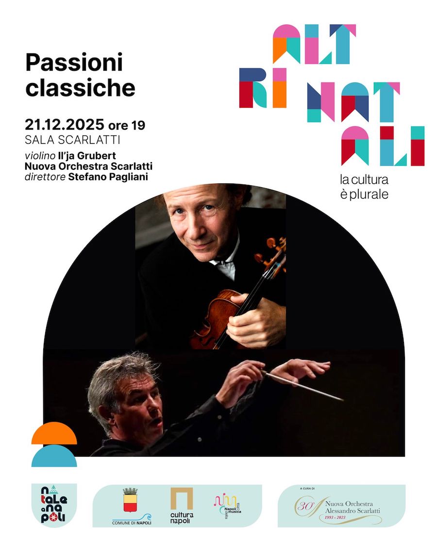 Domenica 21 dicembre 2025, alle ore 19.00, a Napoli, presso la Sala Scarlatti del Conservatorio San Pietro a Majella (Via San Pietro a Majella, 35) Passioni classiche (ingresso libero fino a esaurimento posti), con la Nuova Orchestra Scarlatti diretta da Stefano Pagliani e il violinista di fama mondiale Il’JA GRUBERT: appuntamento con la grande musica classica per tutti, dal Bach più amato alle brillanti invenzioni di Henrik Wieniawski. Passioni classiche è l’evento conclusivo della rassegna della N.O.S. Stelle di Natale, promossa e finanziata dal Comune di Napoli nell’ambito del progetto “Altri Natali“.