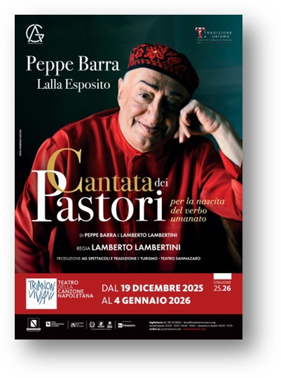 Prodotta da Ag Spettacoli e Tradizione e Turismo – Teatro Sannazaro, la Cantata dei Pastori vede in scena, con Peppe Barra e Lalla Esposito, Luca De