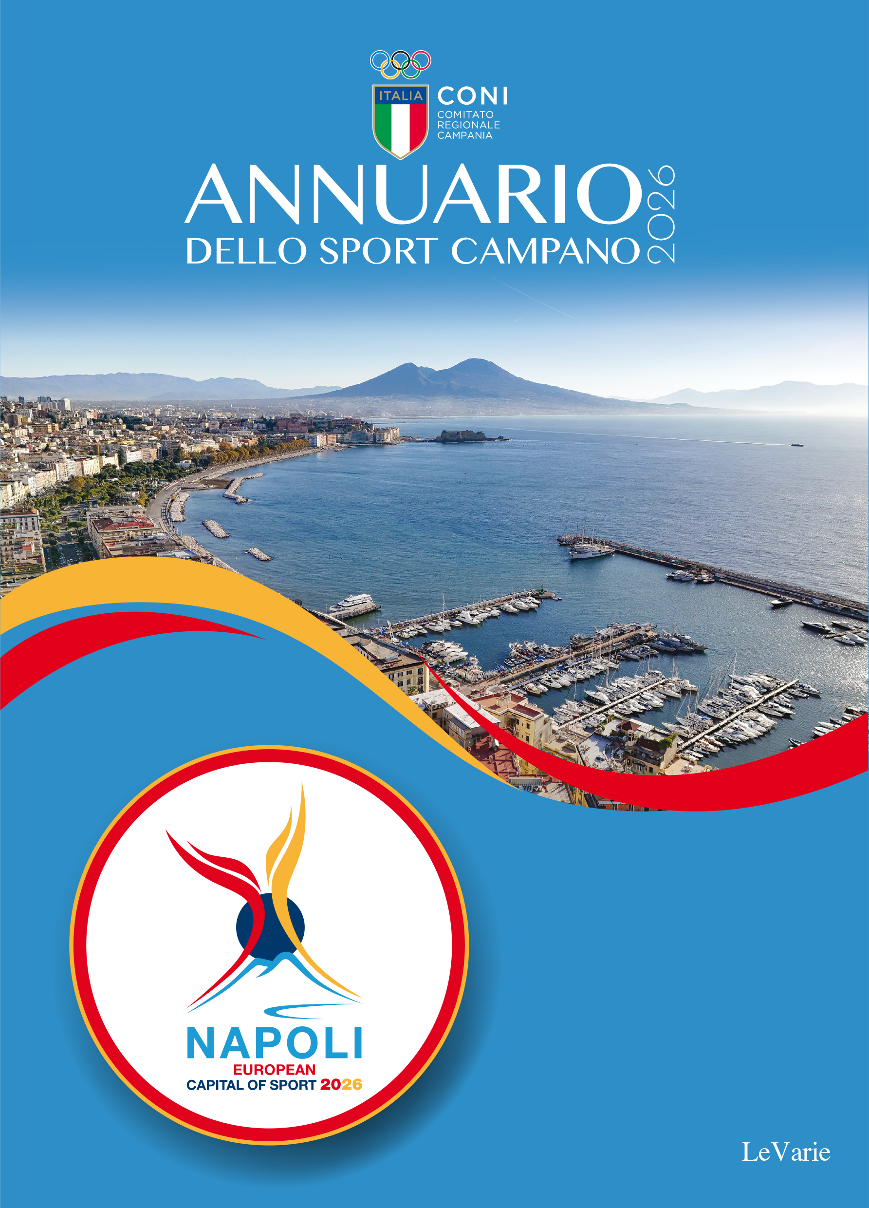 La copertina dell’Annuario dello Sport Campano 2026, edito da LeVarie per il Coni Campania, è dedicata a Napoli Capitale Europea dello Sport, con spazio all’interno per le numerose iniziative che caratterizzano questa prestigiosa stagione appena iniziata. Tante pagine del volume sono dedicate alle attività svolte dal Comitato regionale Coni Campania nel corso del 2025. In particolare, al racconto dell’impegno al fianco della Regione Campana, che ha portato alla storica riapertura della piscina dello stadio Collana al Vomero e al successo crescente dei voucher sportivi erogati dall’Arus.