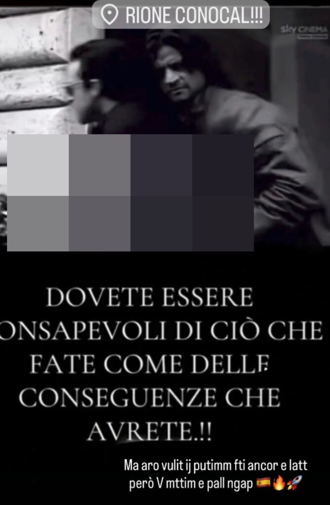 Frasi proposte in un linguaggio sgrammaticato e sguaiato, accompagnate da emoticon ancora più esplicite, una sfilza di sigle e codici indecifrabili per chi è estraneo alle logiche di quello scontro, seppure solo virtuale, almeno per ora. Seppure la brutalità e la crudezza insita nell’arma puntata contro il rione del gruppo rivale dimostra come e quanto questo scenario sia destinato a proiettarsi in un contesto ben più cruento.