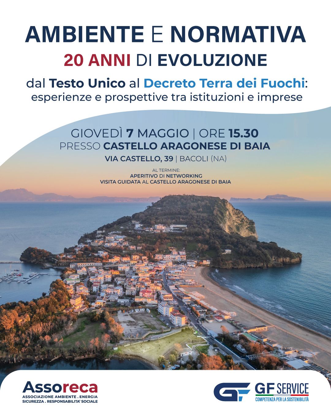 Si terrà giovedì 7 maggio alle ore 15.30, nel Castello Aragonese di Baia (via Castello 39, Bacoli), il convegno dal titolo “Ambiente e normativa. 20 anni di evoluzione, dal Testo Unico al Decreto Terra dei Fuochi: esperienze e prospettive tra istituzioni e imprese”.